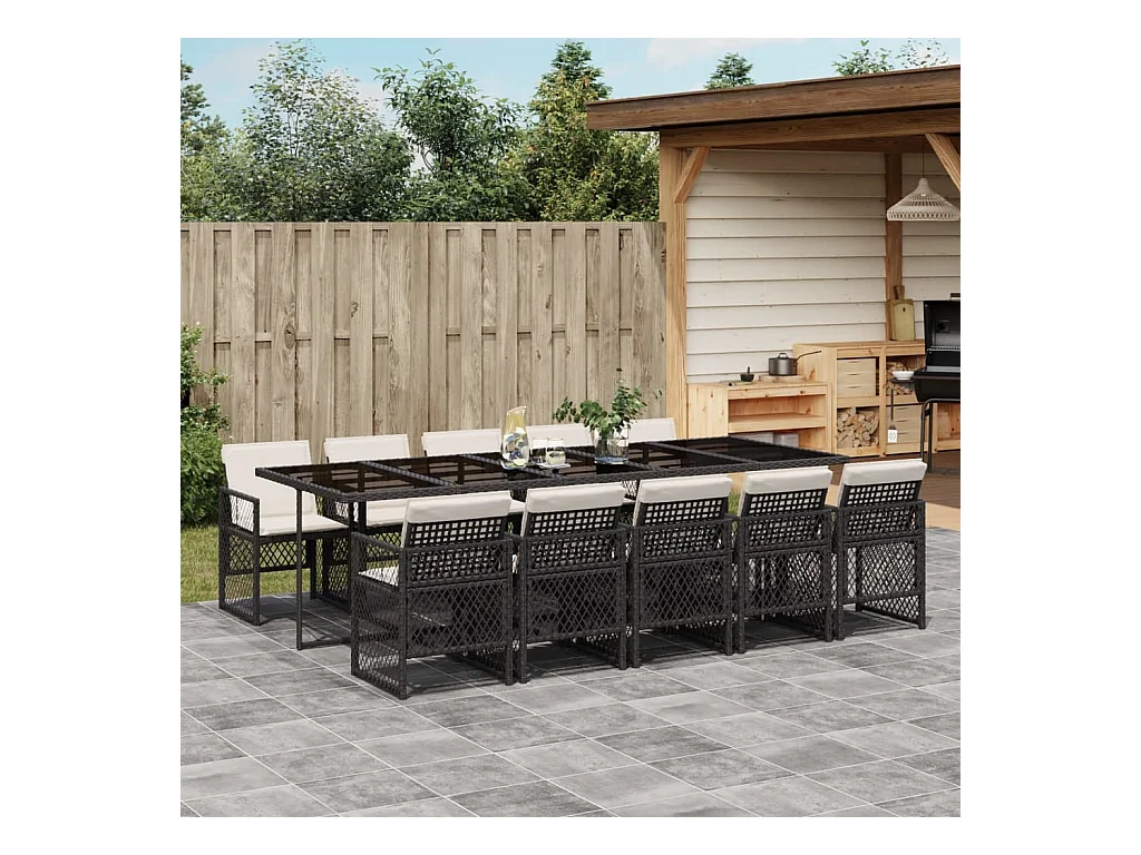 Connersville Ensemble à manger de jardin 11 pcs coussins noir résine tressée