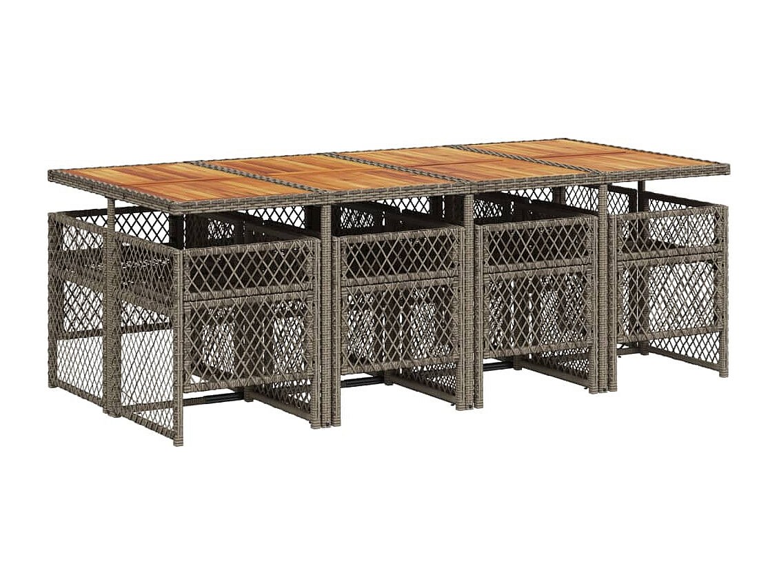 Connersville Ensemble à manger de jardin 9 pcs coussins gris résine tressée
