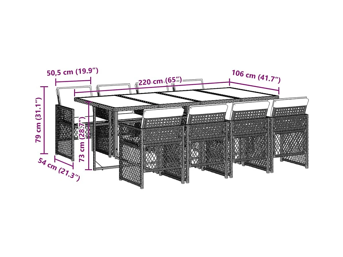Connersville Ensemble à manger de jardin et coussins 9 pcs marron poly rotin