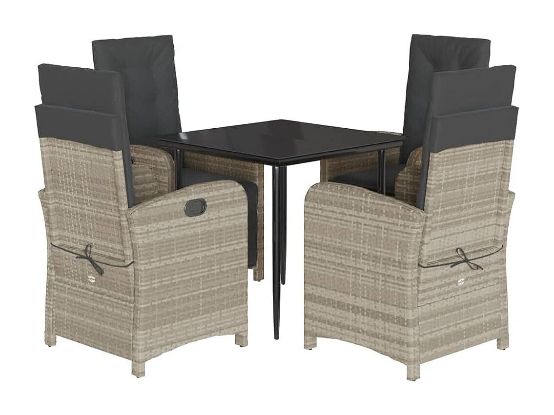 Connie Ensemble à manger de jardin et coussins 5 pcs gris clair rotin