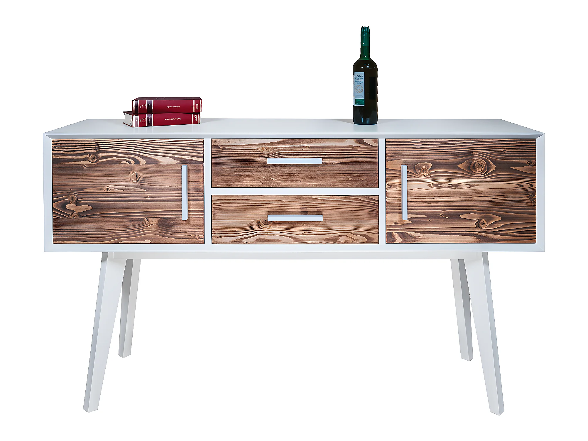 Console 2 portes 2 tiroirs Nostalgie - Blanc et bois