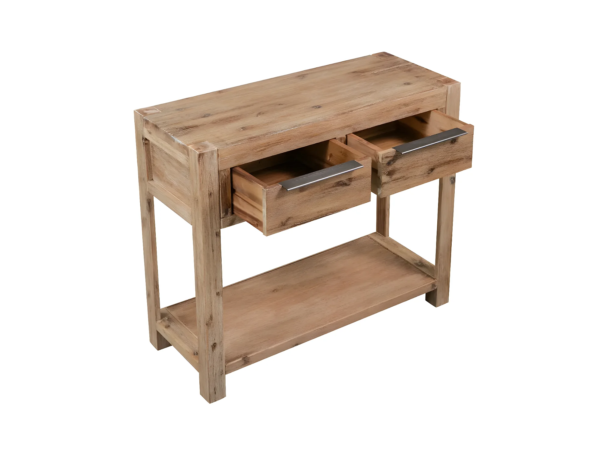 Console 2 tiroirs acacia massif foncé Massala