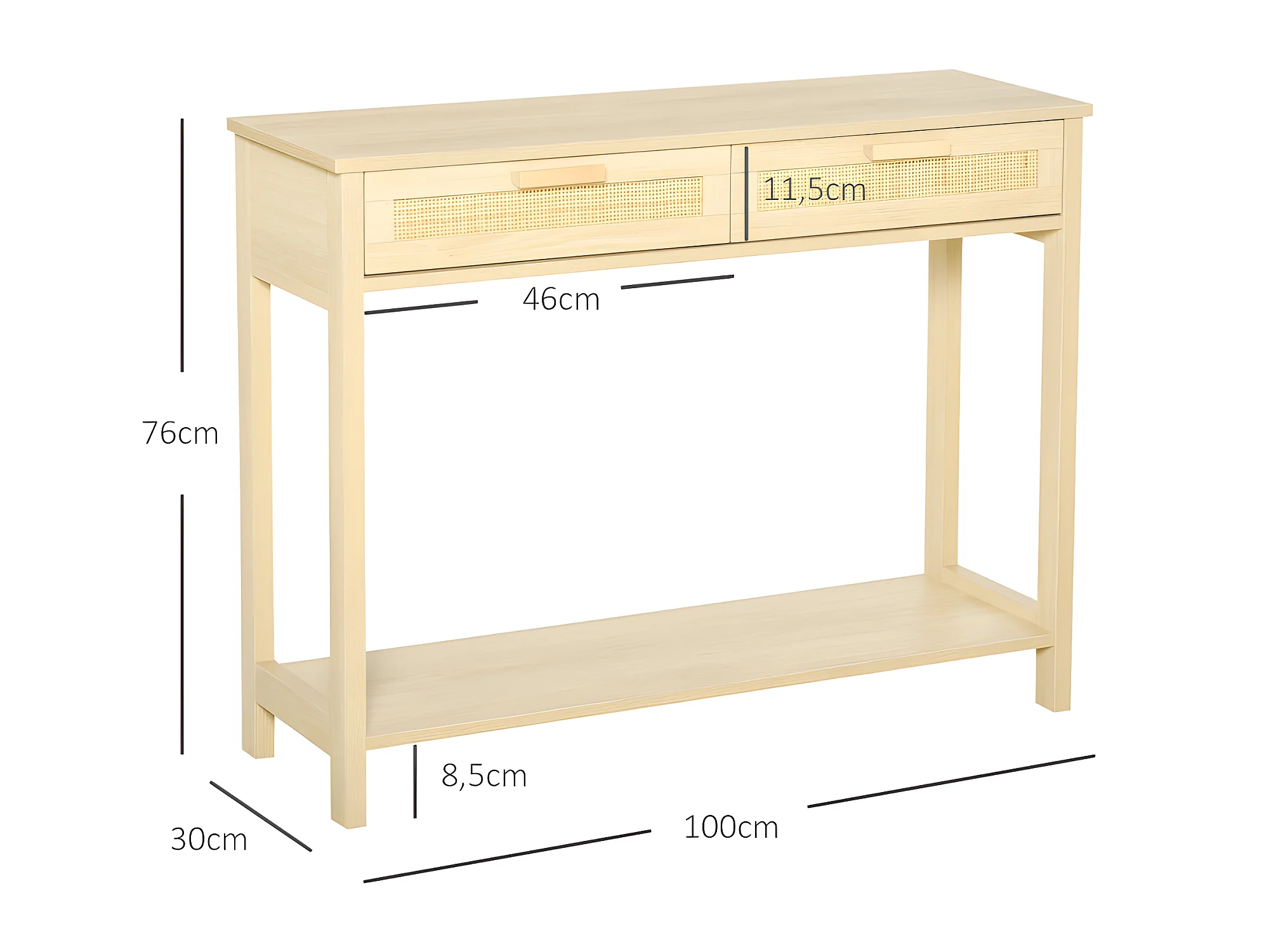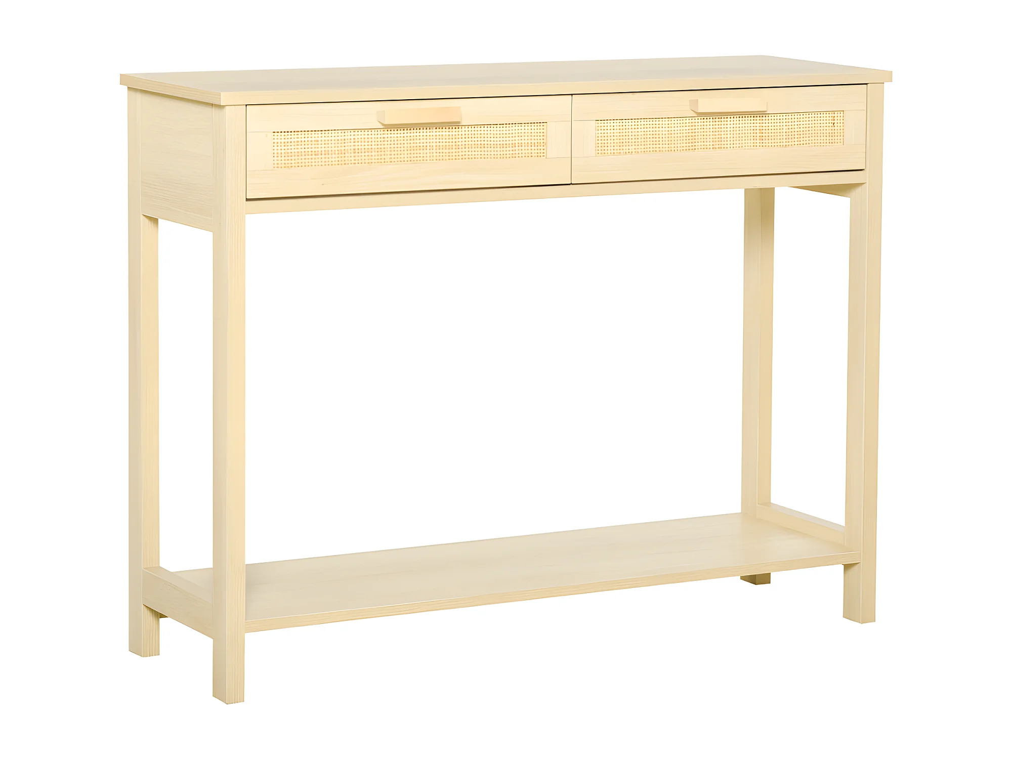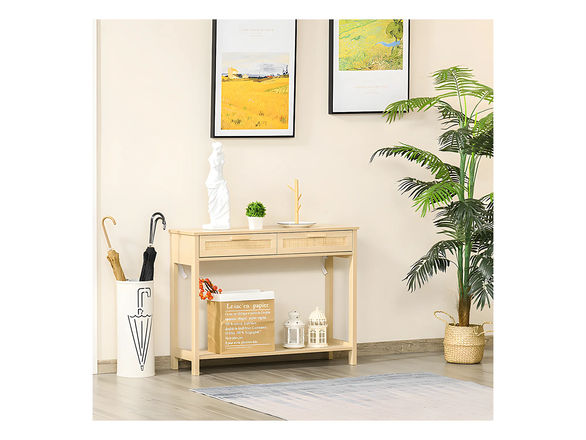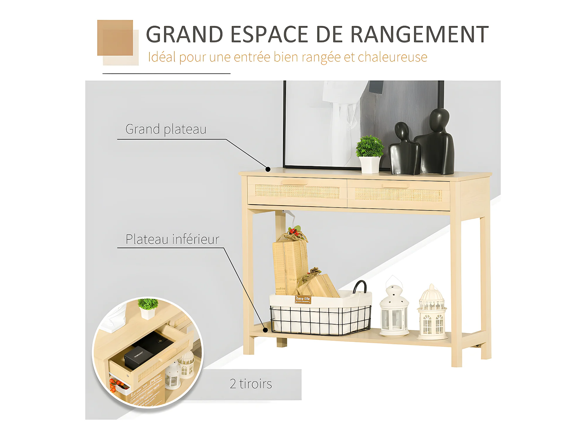 Console 2 tiroirs cannage rotin MILDURA aspect bois cair