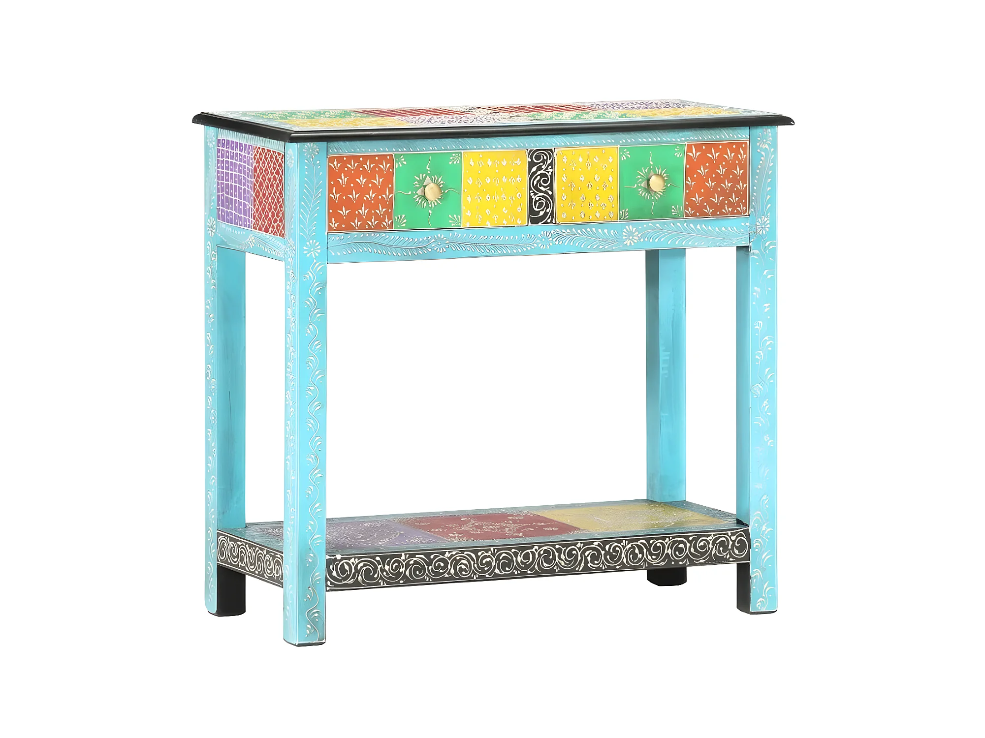Console 2 tiroirs manguier massif bleu et multicolore Coloria