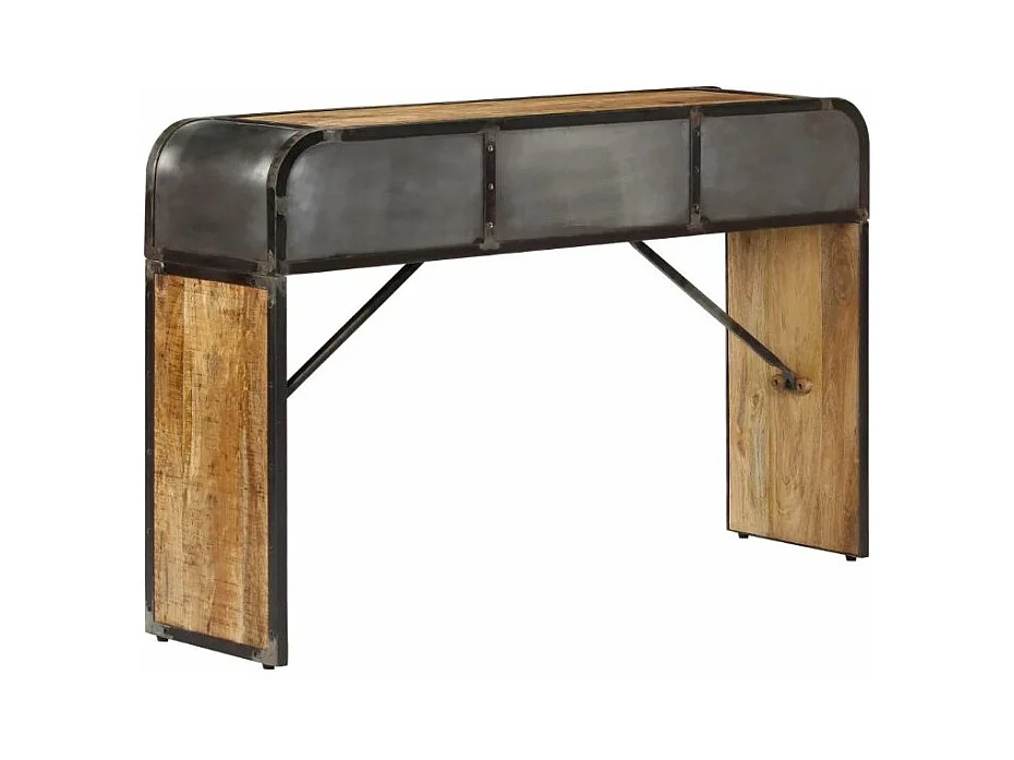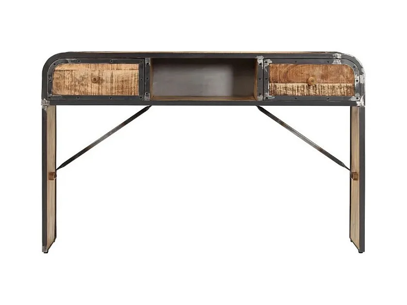 Console 2 tiroirs manguier massif clair et métal noir Cinéma