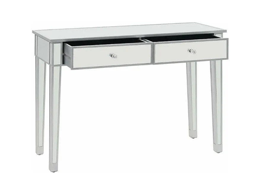Console 2 tiroirs miroir et bois blanc brillant Glossy