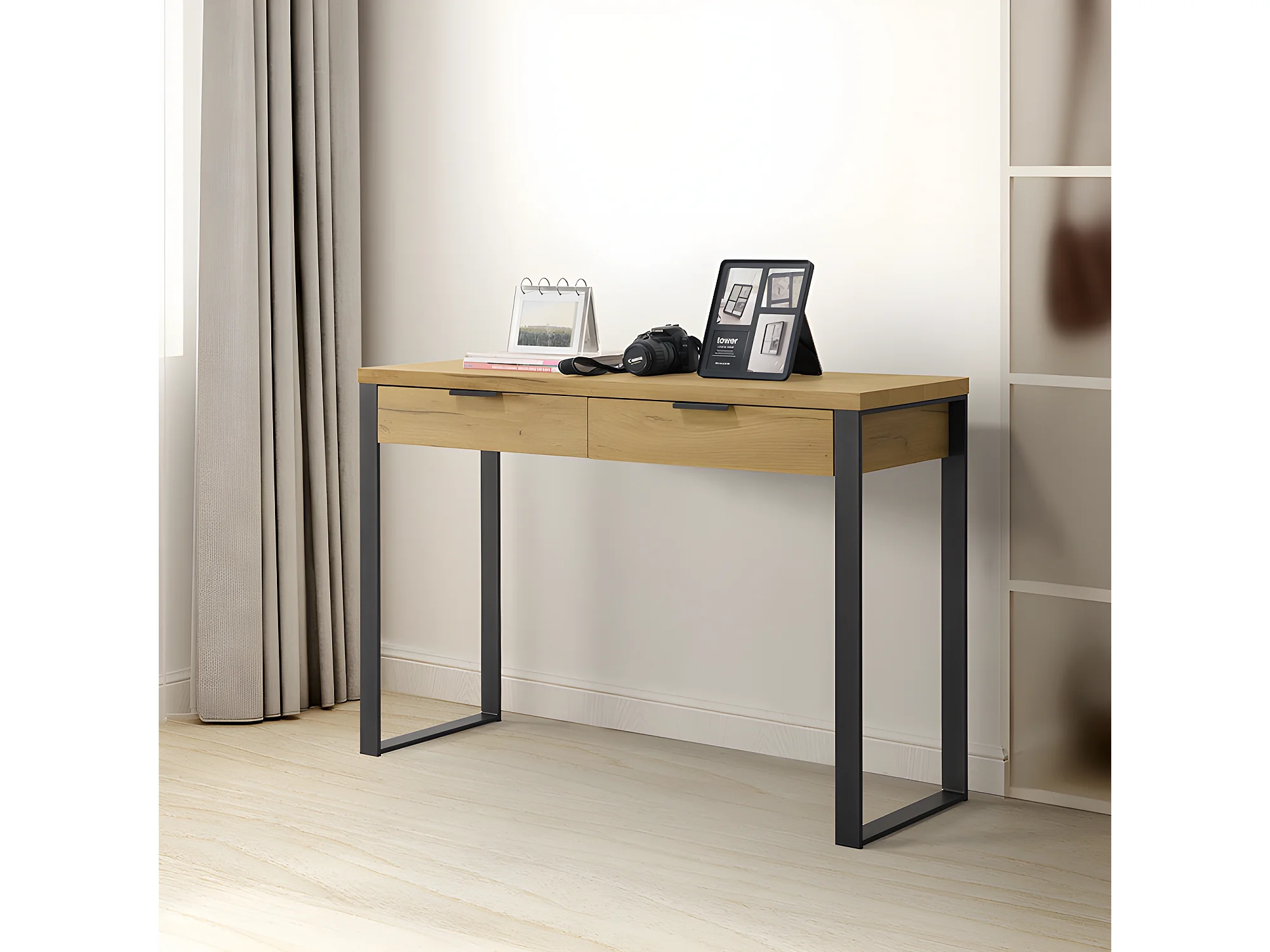 Console 2 tiroirs pieds métal Ron
