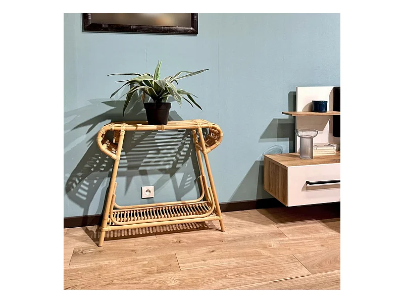 Console 80 cm forme trapèze arrondi en rotin naturel tressé – HAZEL