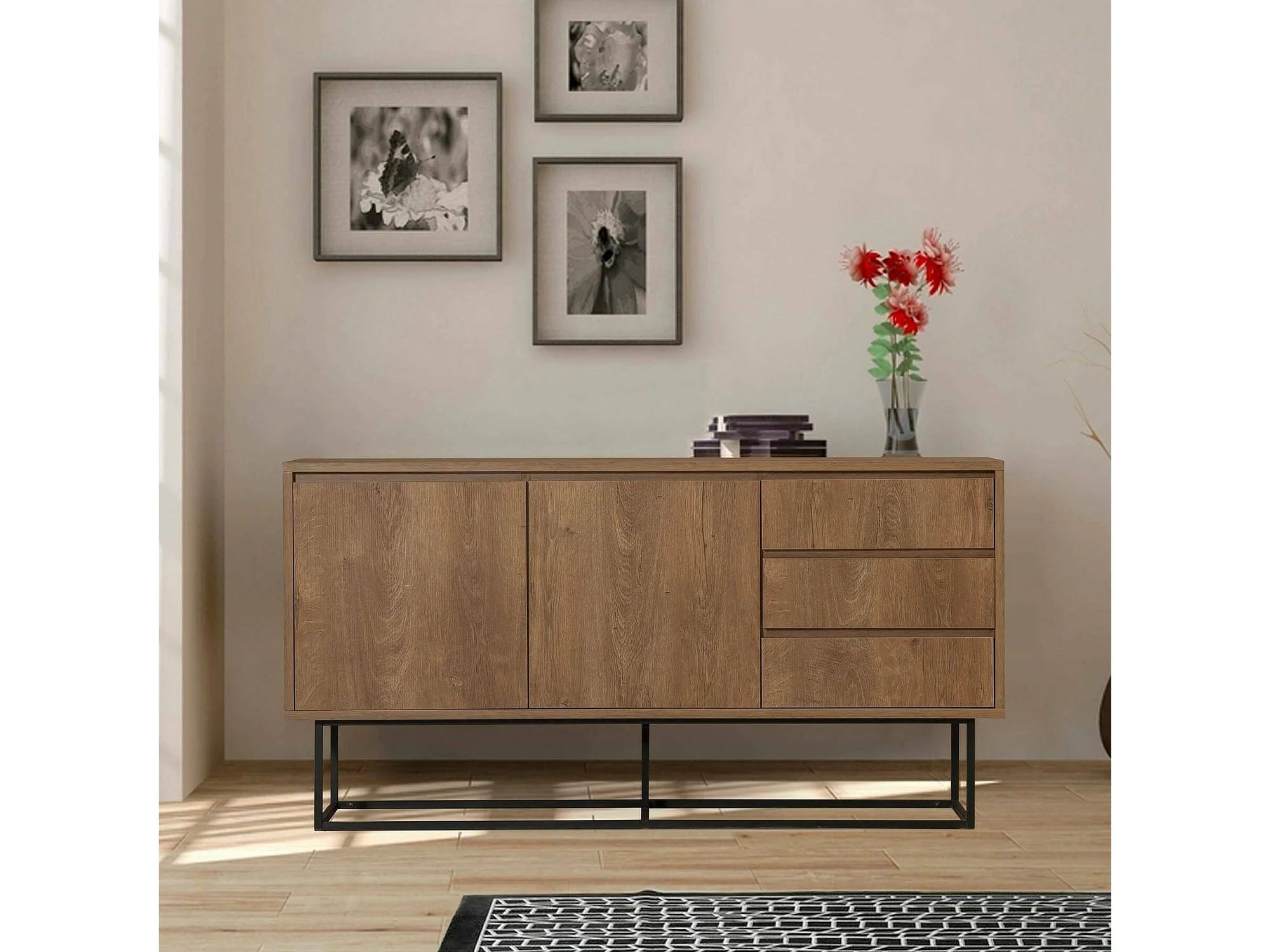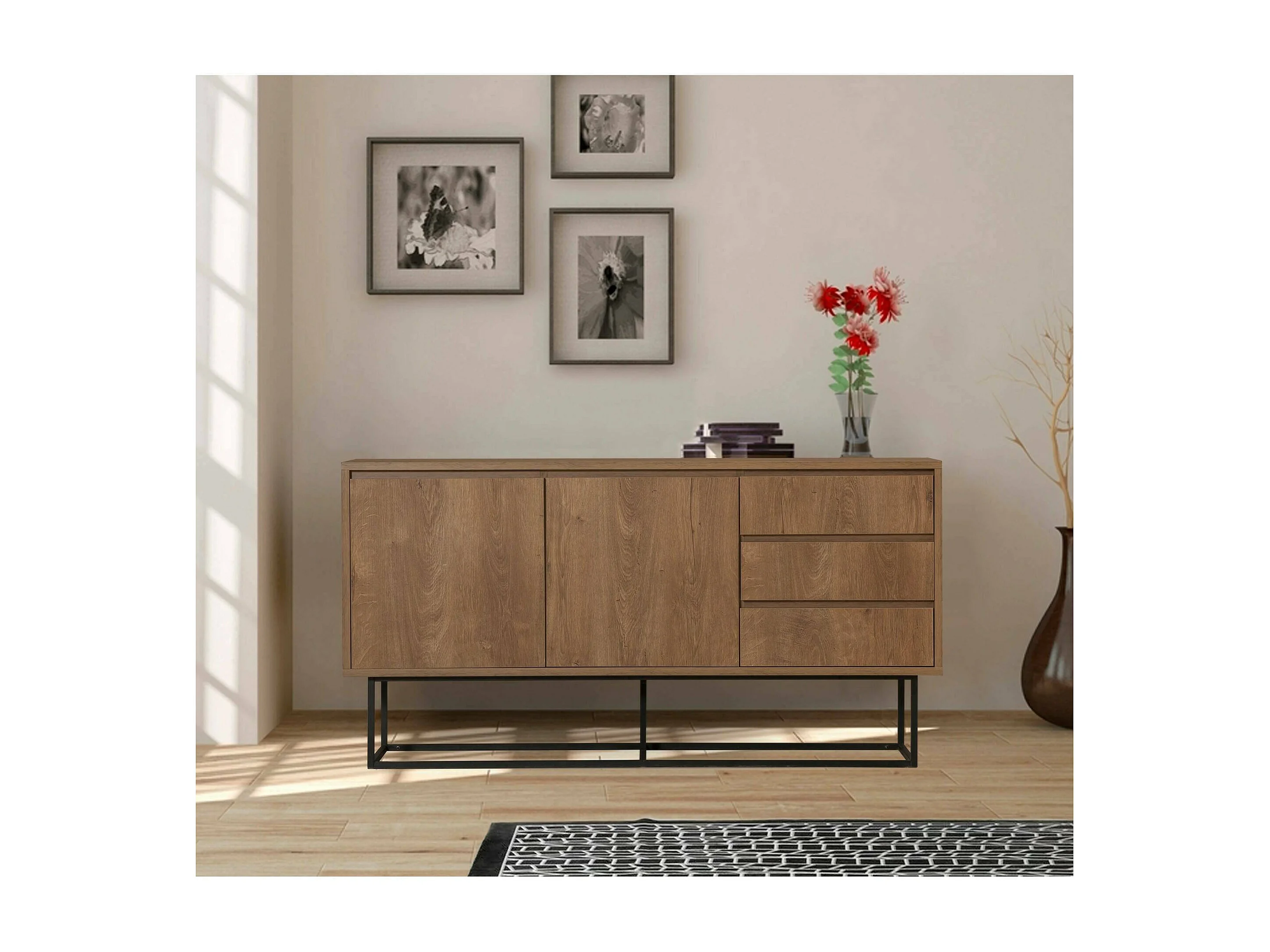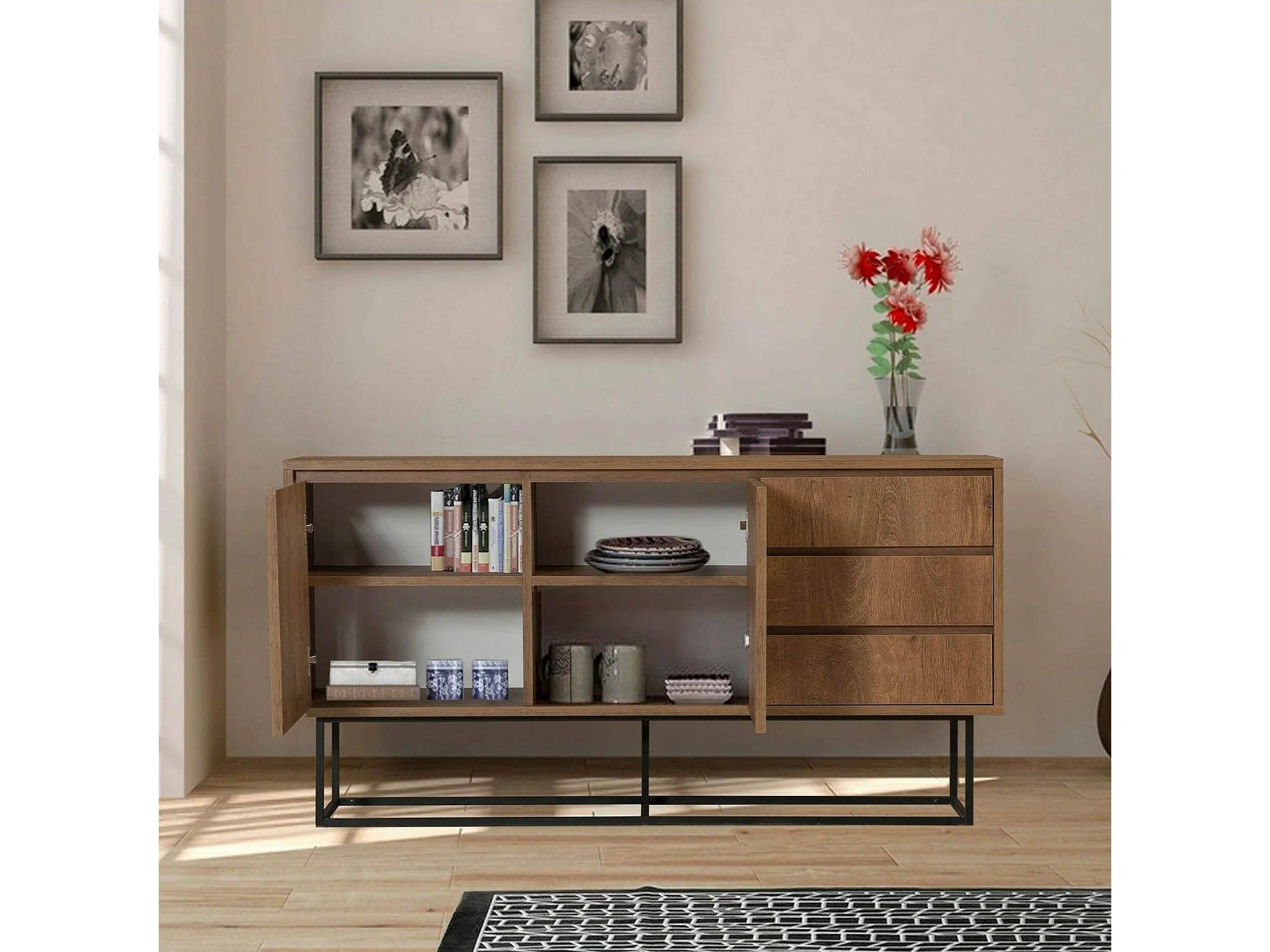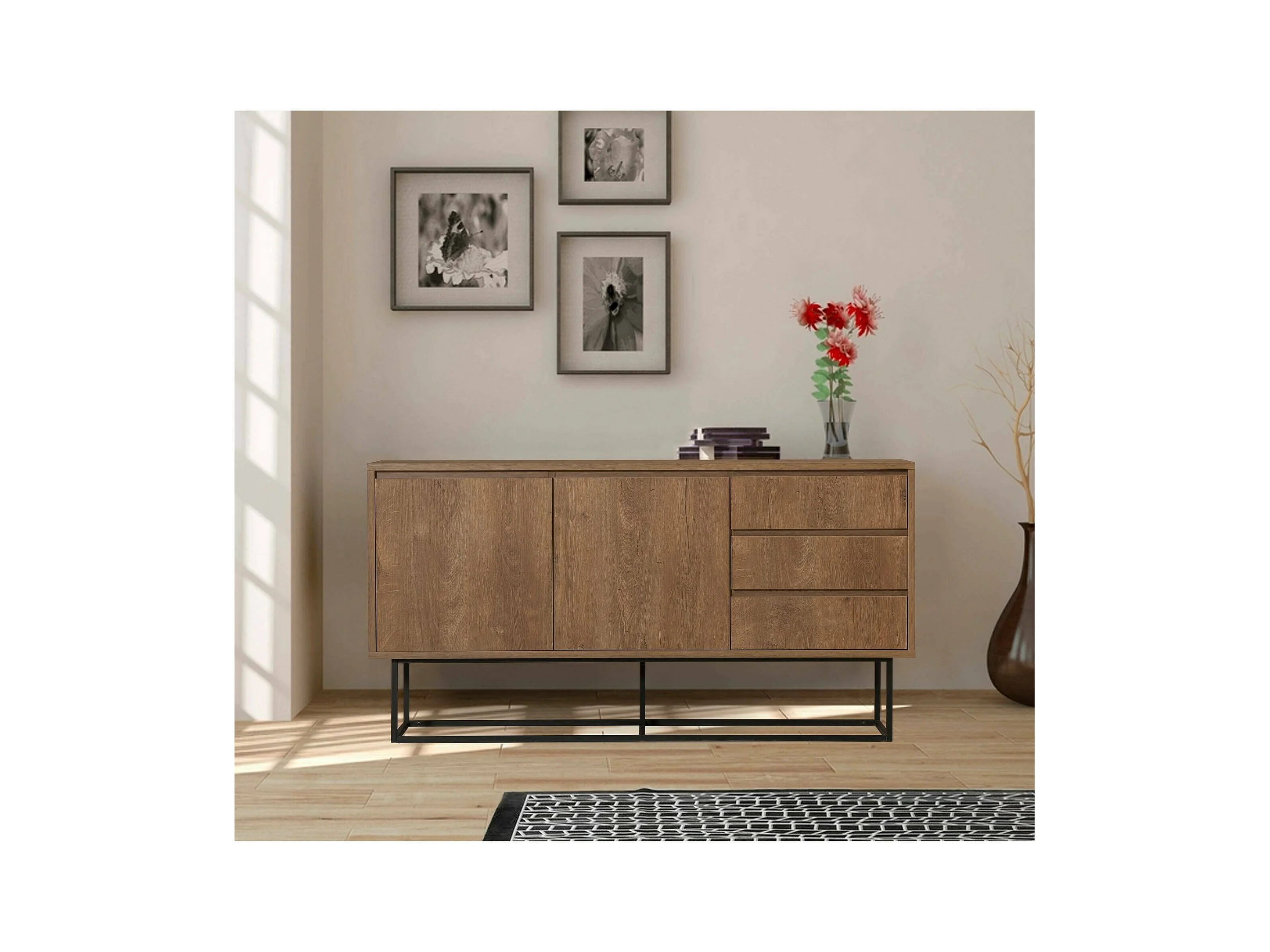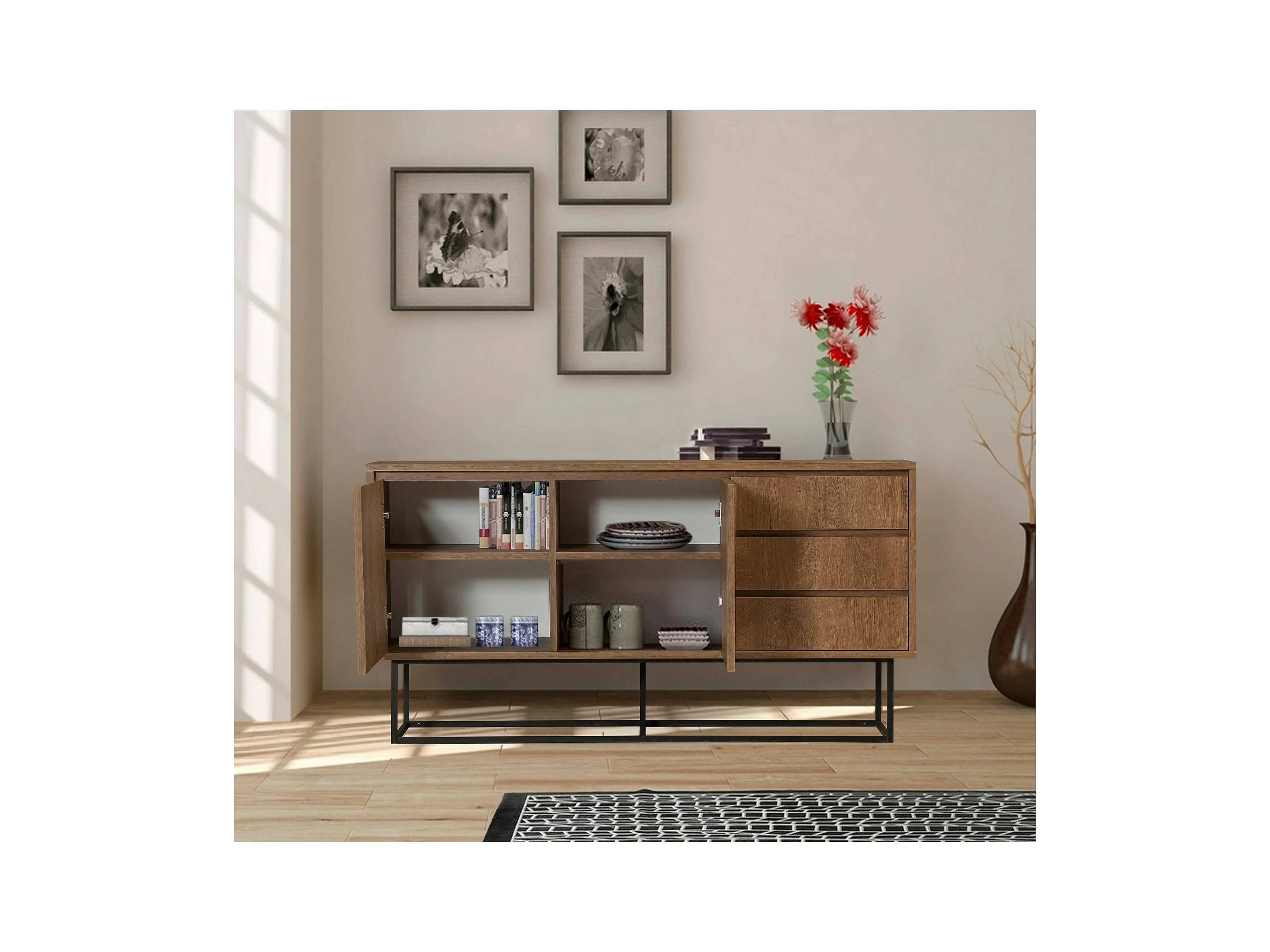 Console Alsafi, Table polyvalente, Armoire de rangement, Bureau du couloir, 140x36 h72 cm, Noyer et Noir