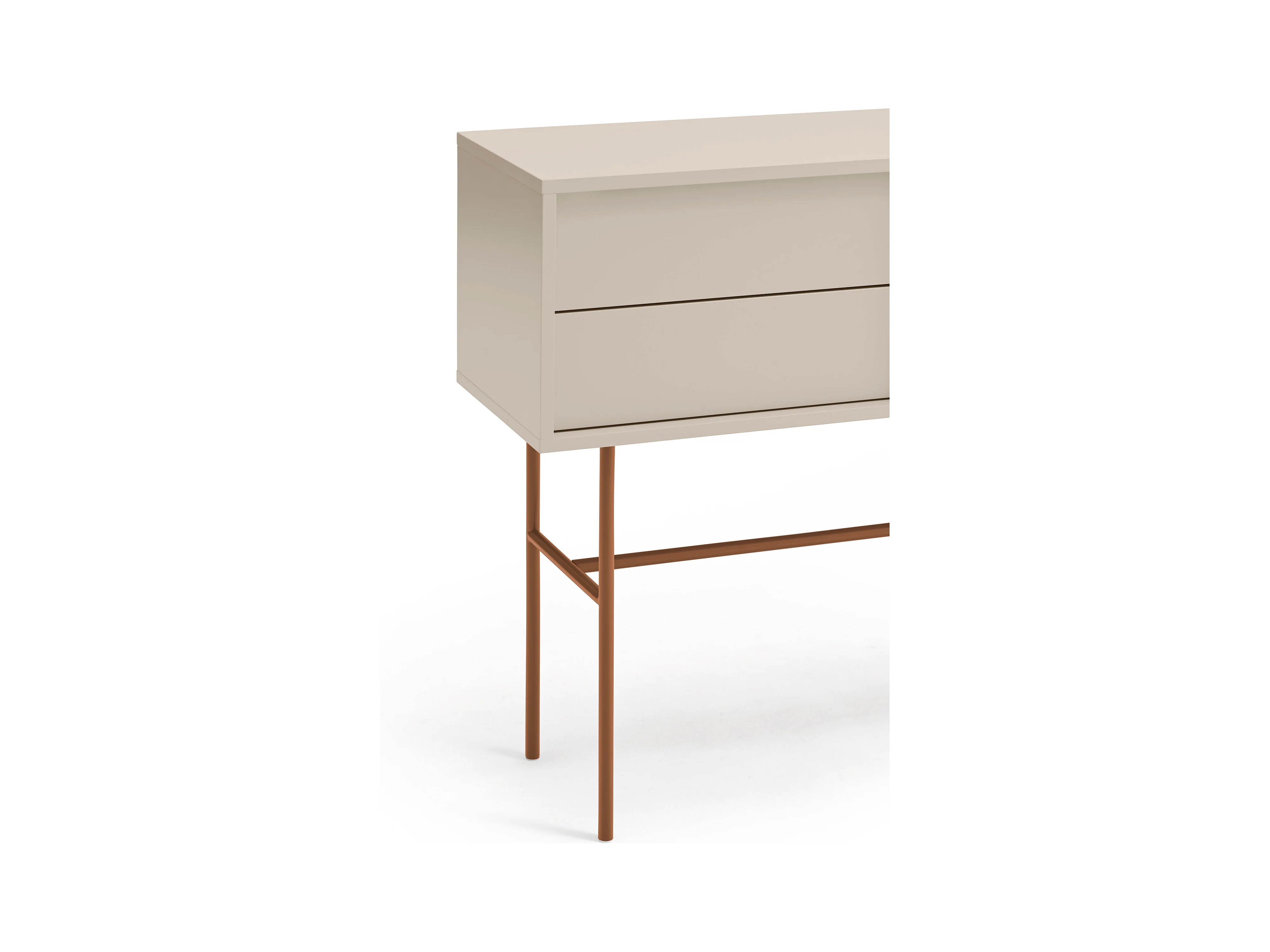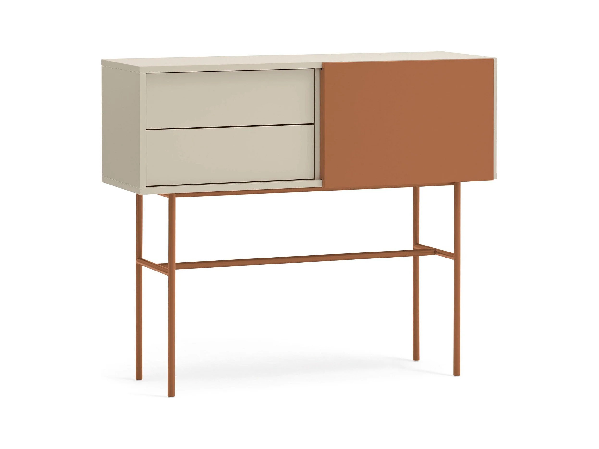 Console avec 2 tiroirs et porte coulissante laquée sable 110x90 cm