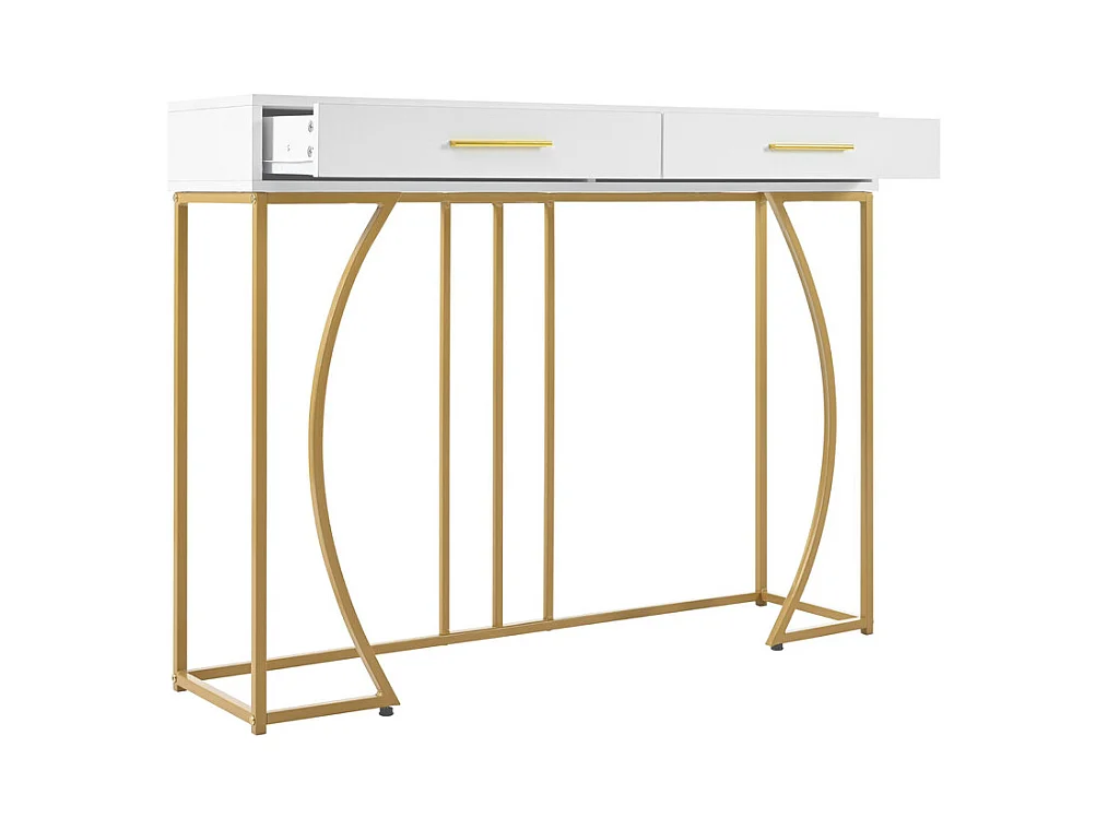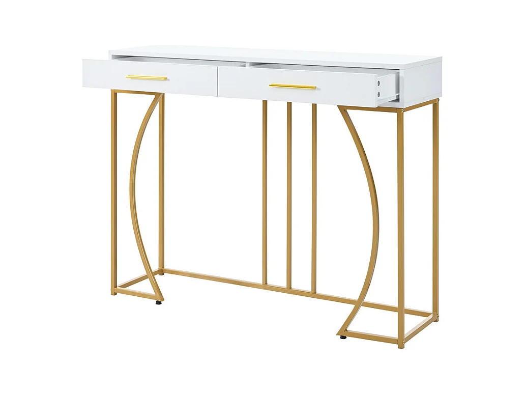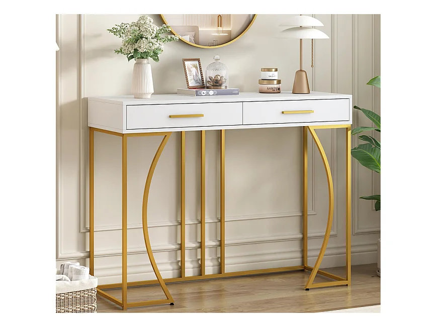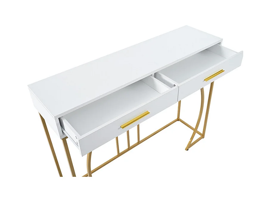 Console avec 2 tiroirs - style moderne - Blanc & Doré
