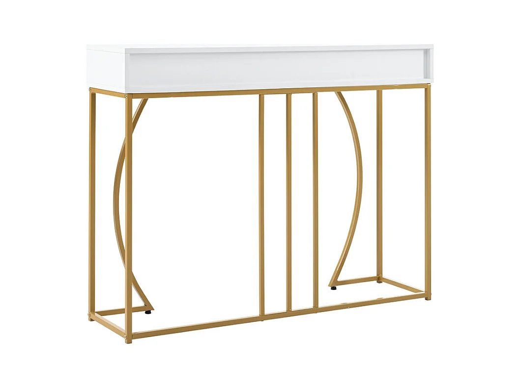 Table console 100x30x80cm - Base dorée - MDF - Blanc + Or
