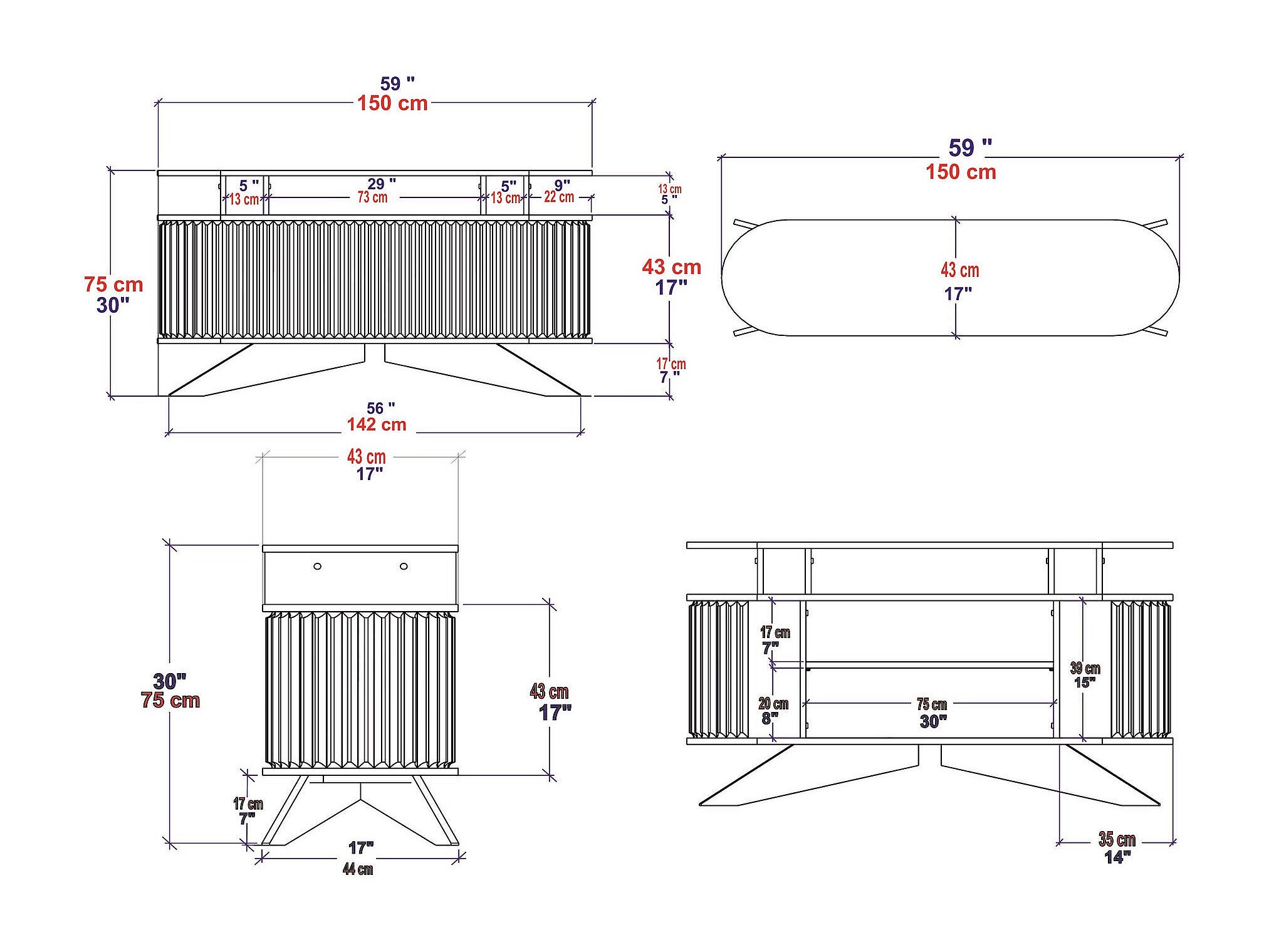 Console avec portes coulissantes Jayson L150xH75cm Chêne clair et Blanc