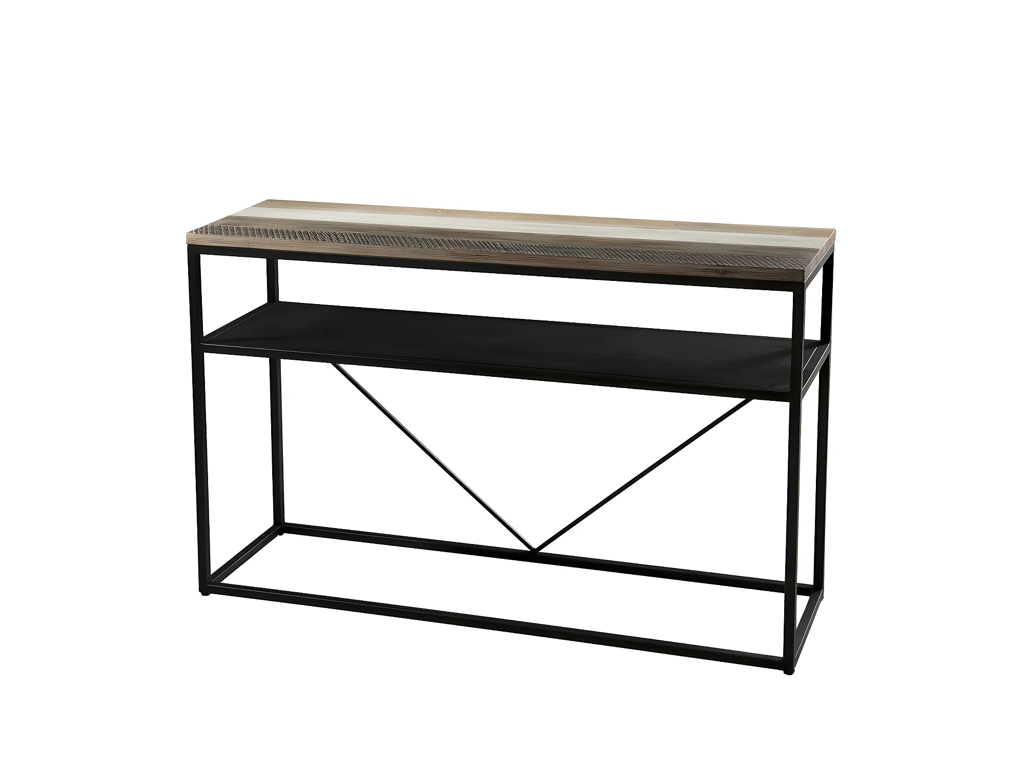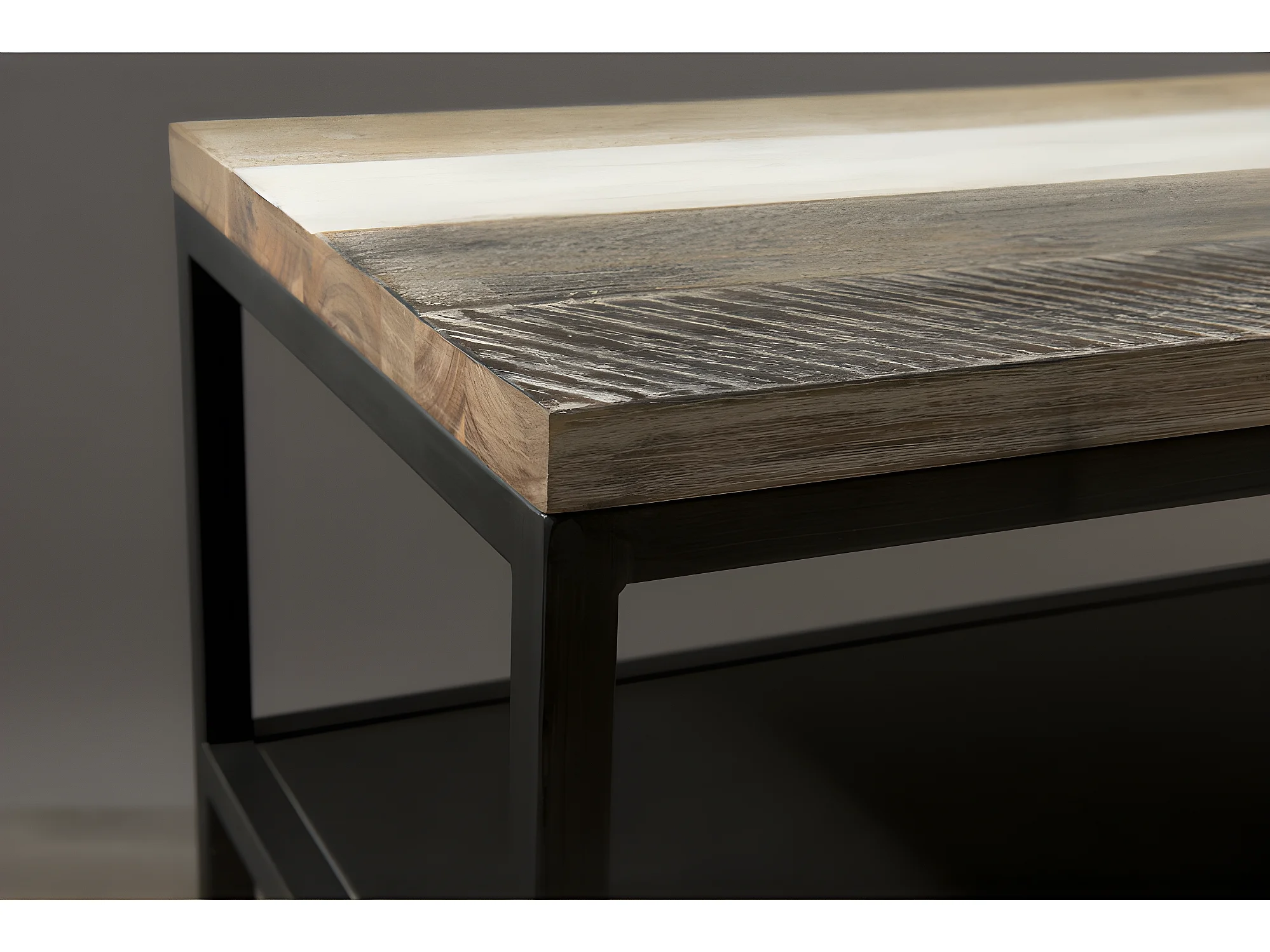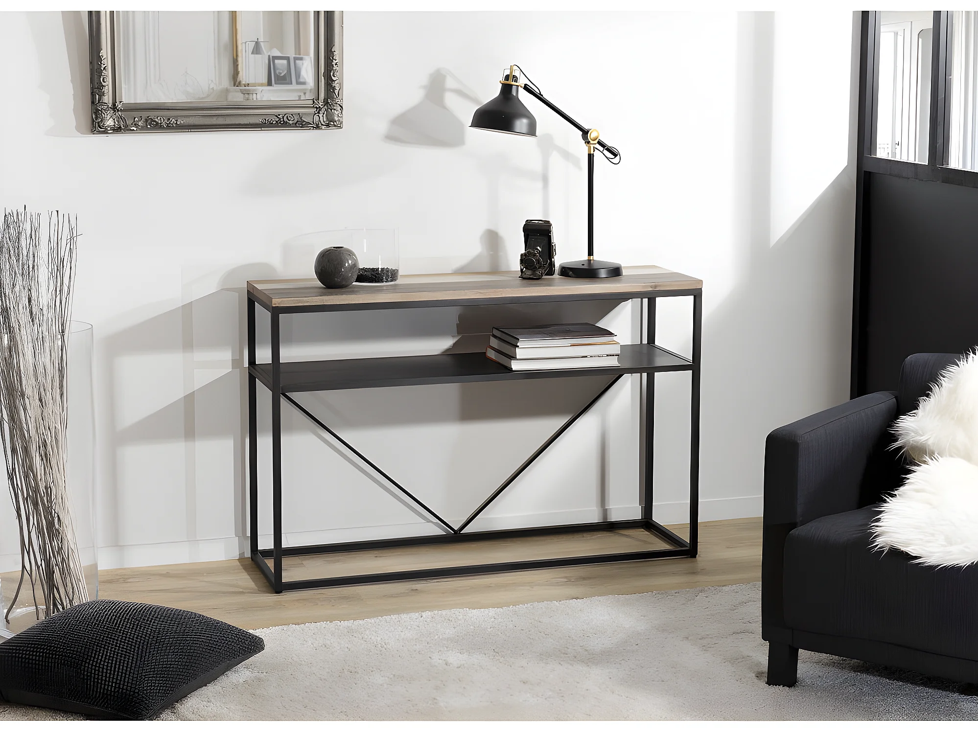 LEANDRE - Console noire rectangulaire avec tablette bois acacia et acier noir