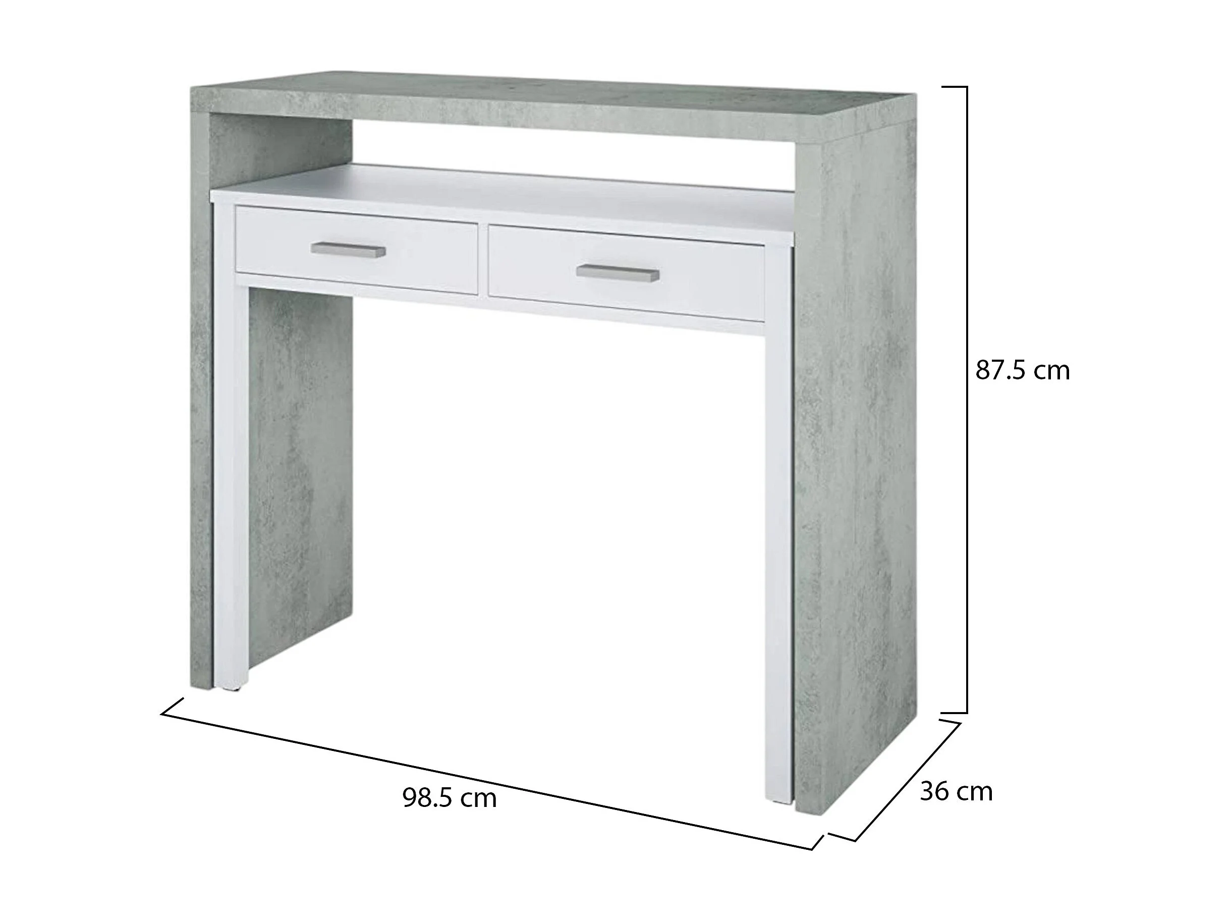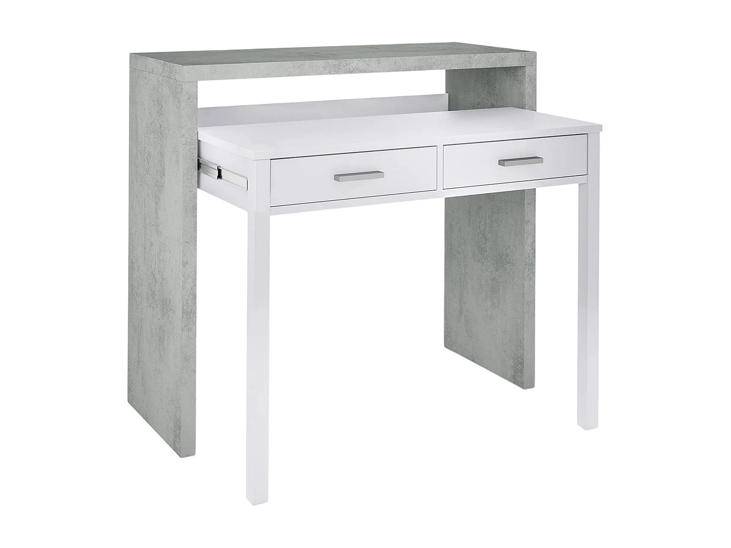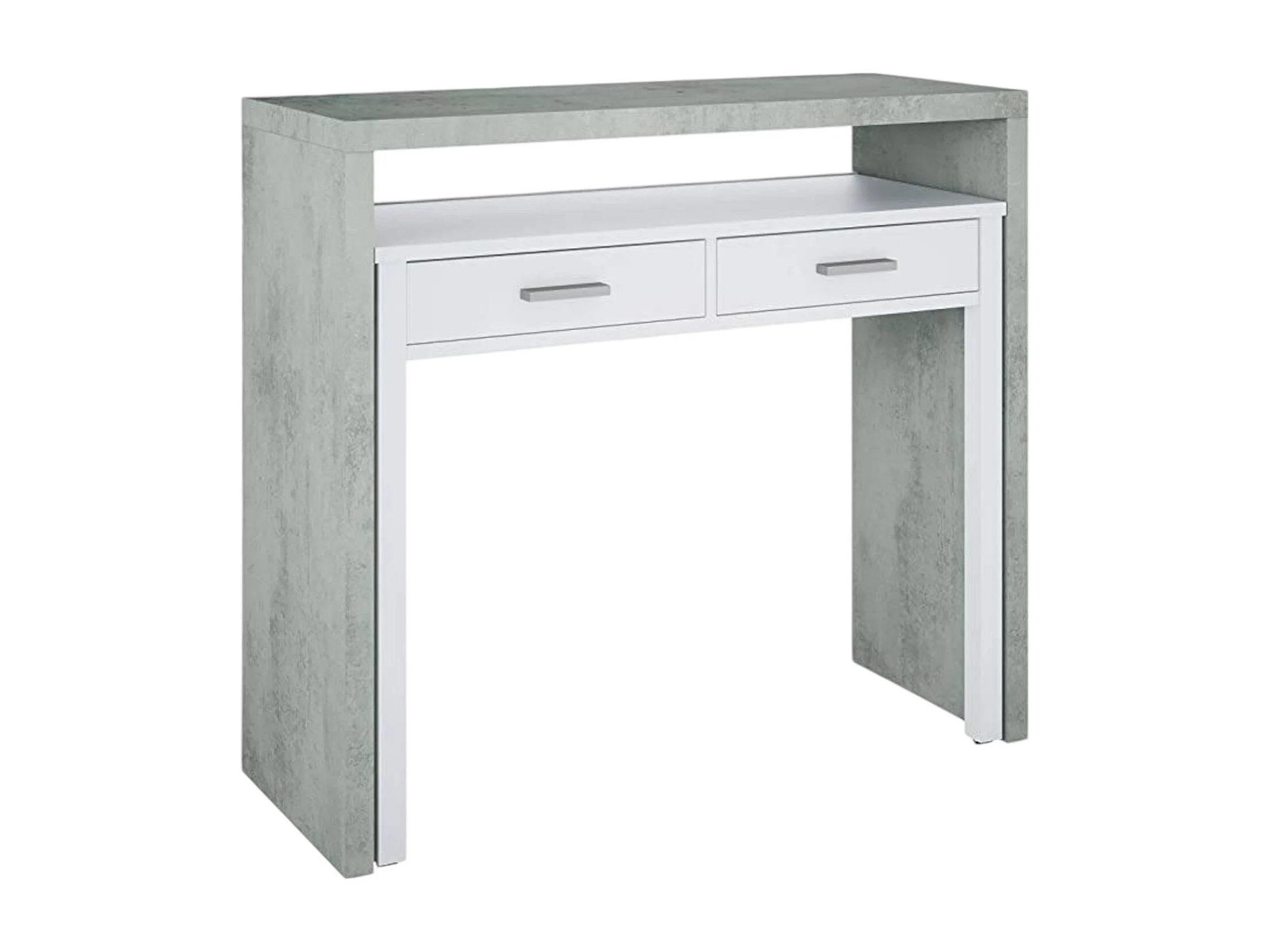 Bureau Billings, Bureau avec plateau extensible, Bureau PC avec 2 tiroirs, 99x36h88 cm, Ciment et Blanc