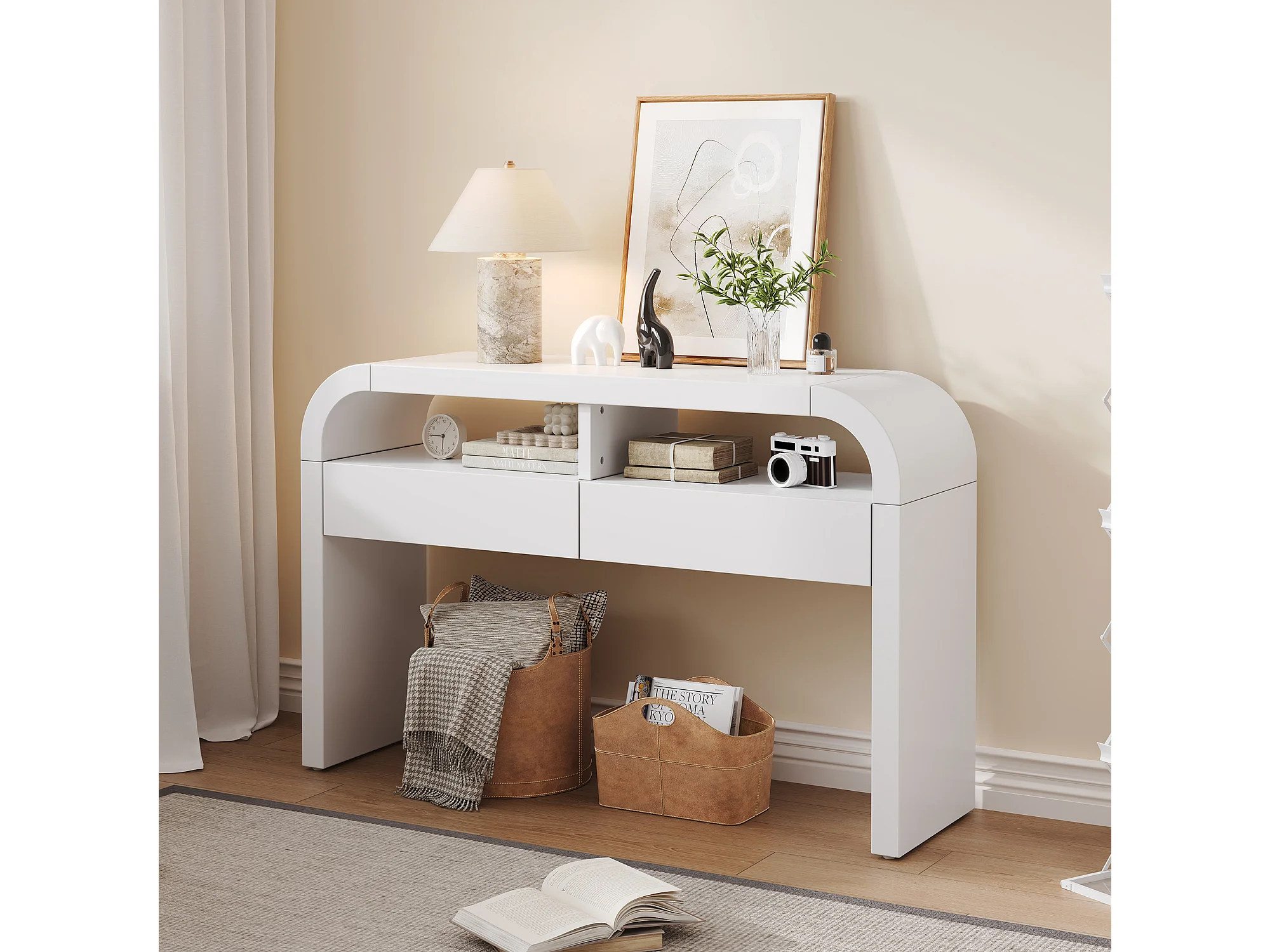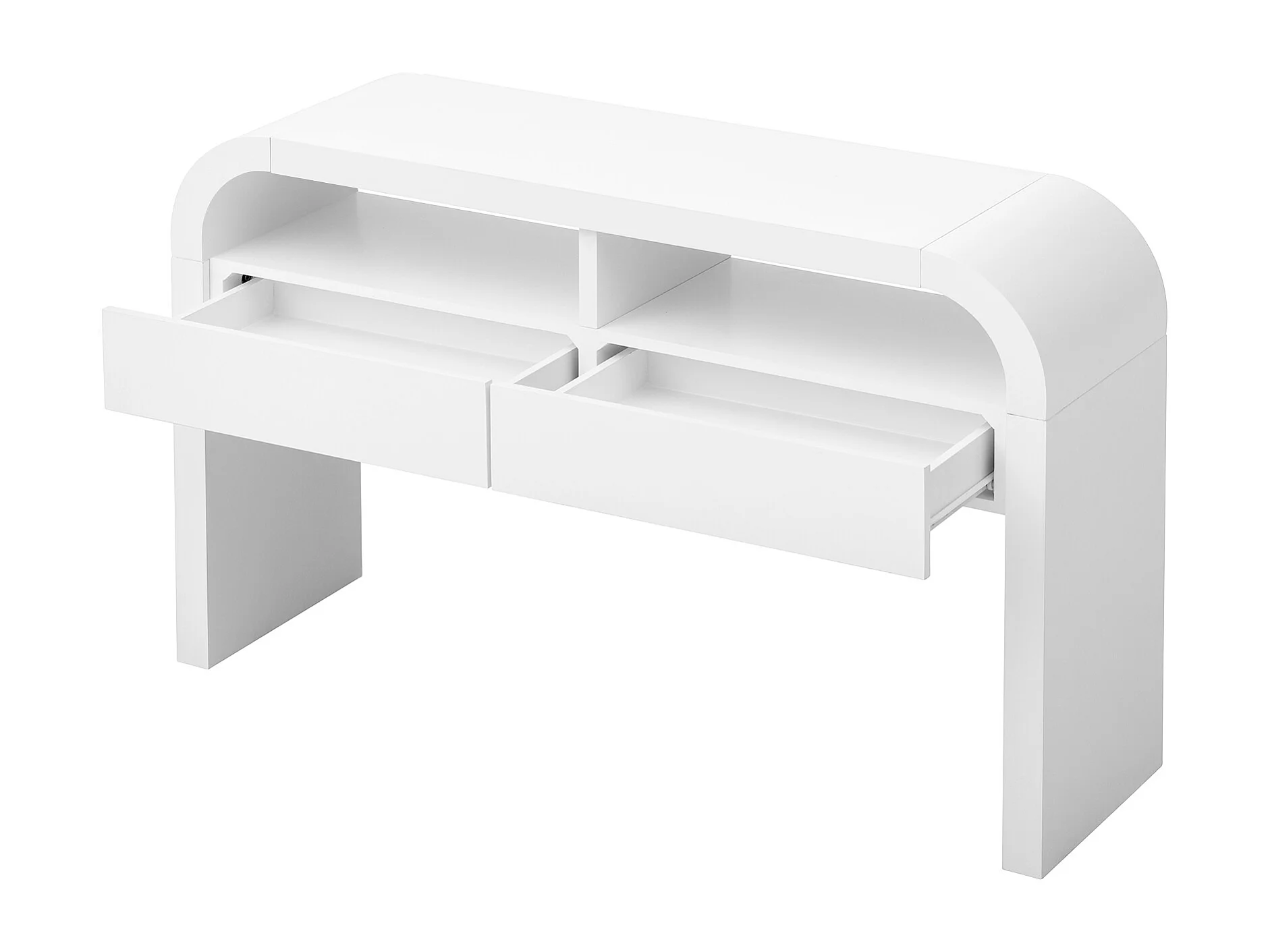 Console blanche 120 x 35,5 x 76,5 cm avec 2 tiroirs et 2 niches