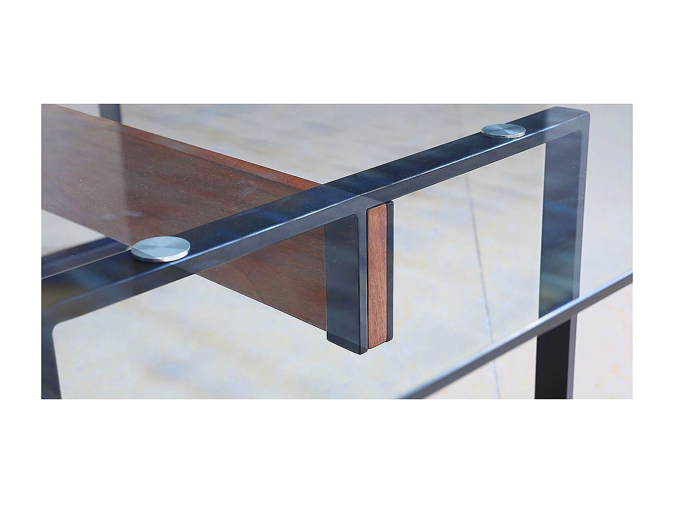 Console salon GOA – Bois massif exotique et métal noir – 2 tablettes