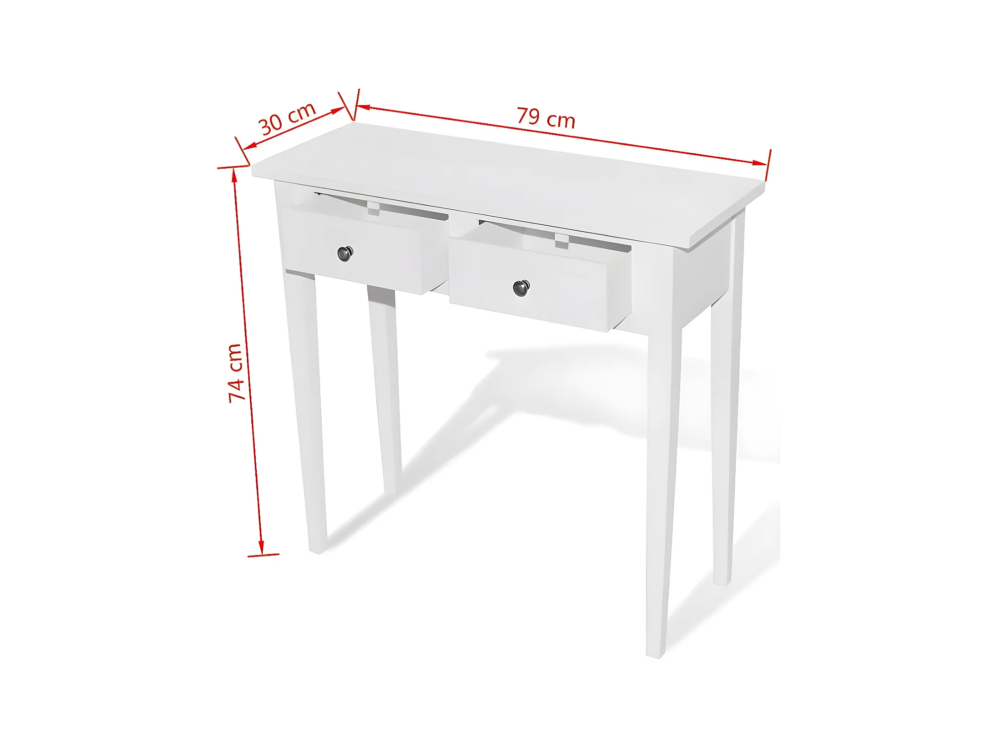 Console coiffeuse 2 tiroirs bois et pin massif blanc Iris