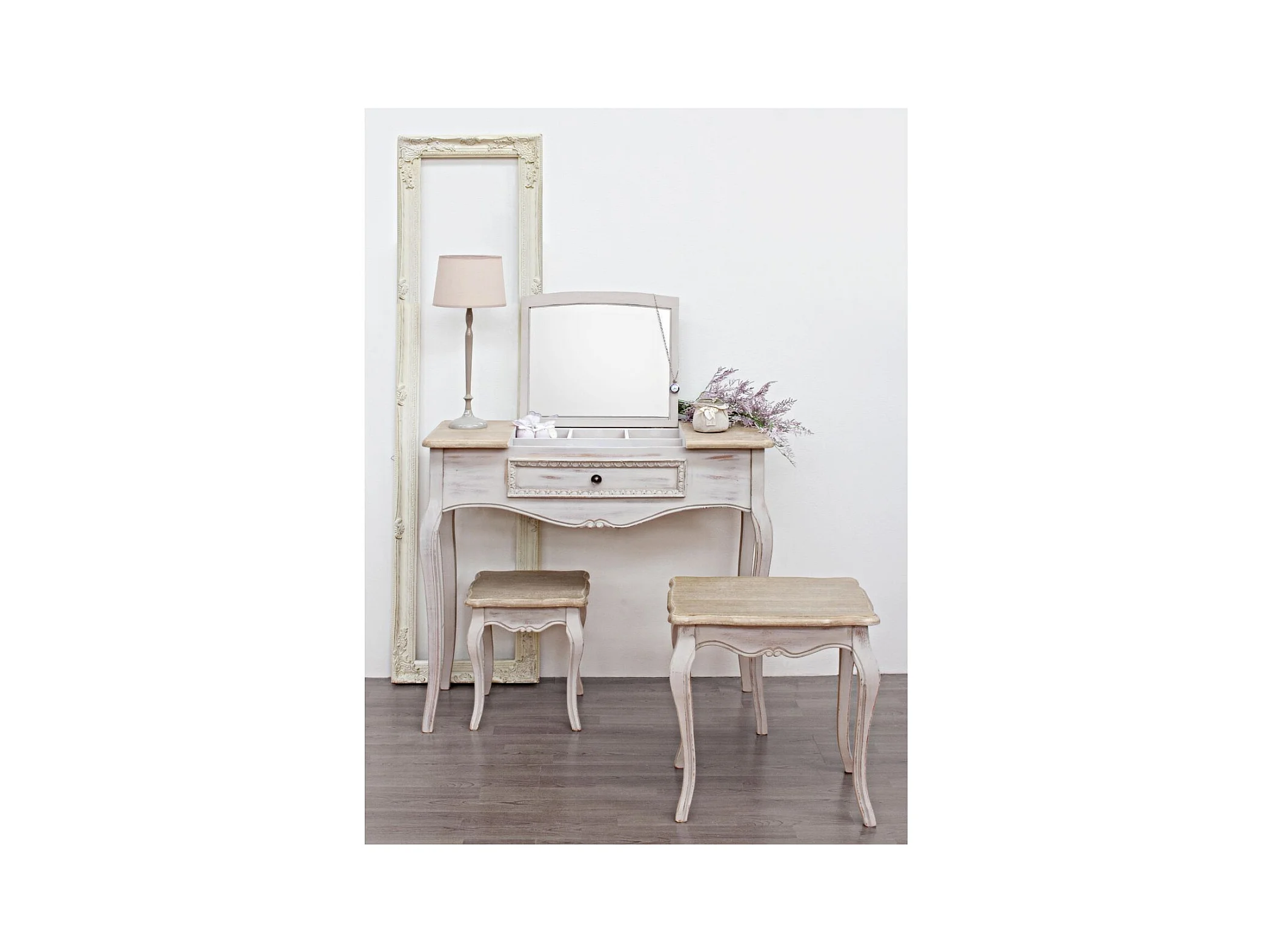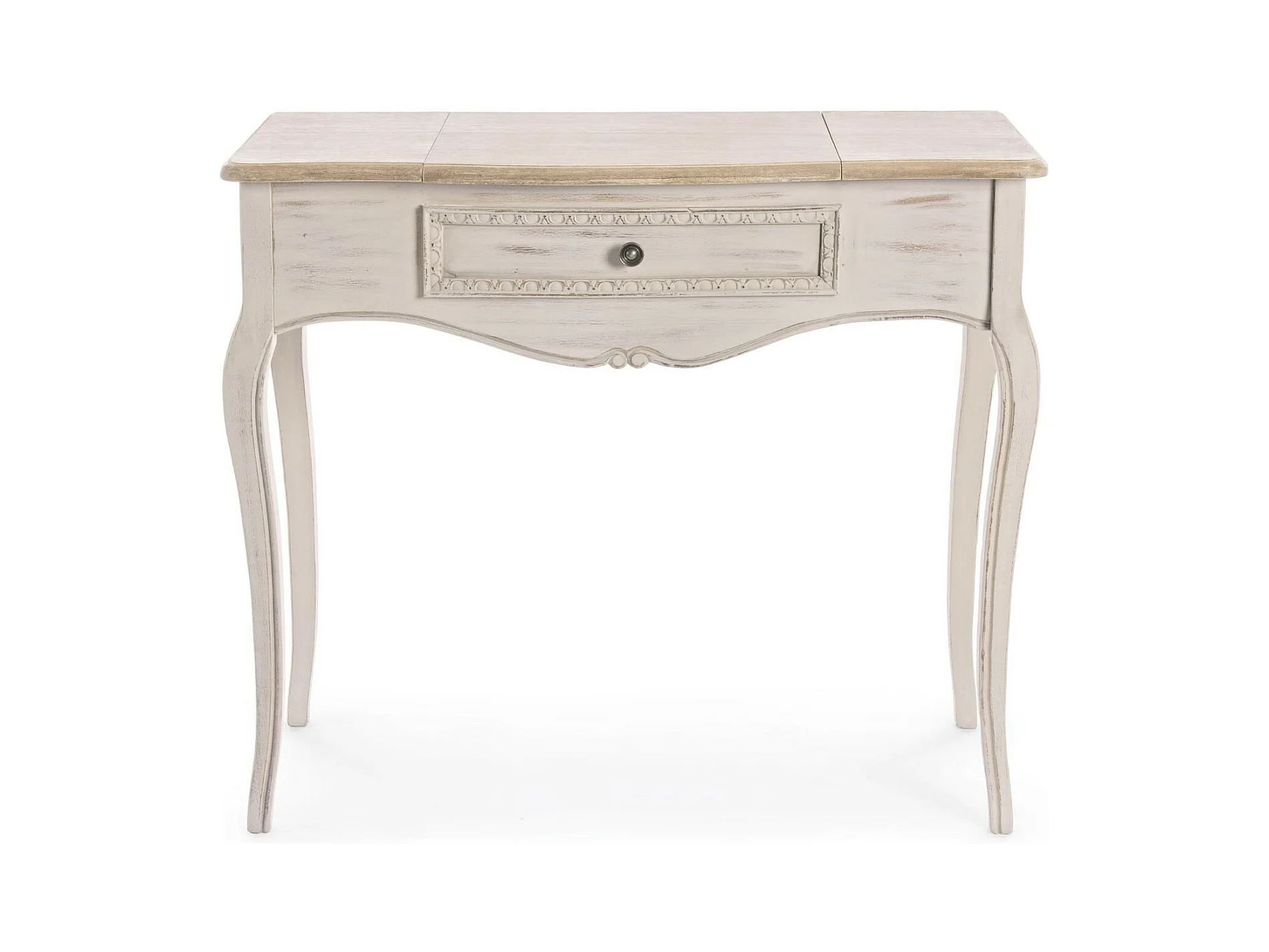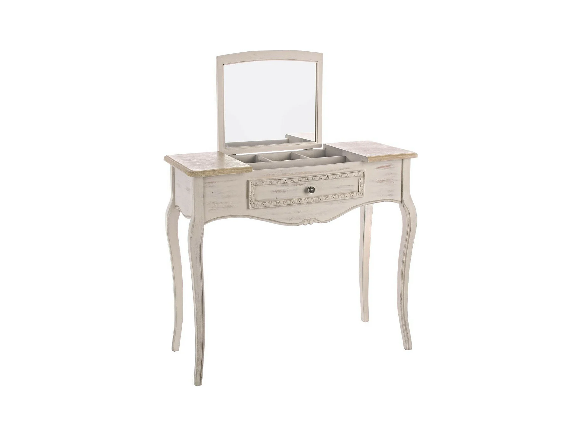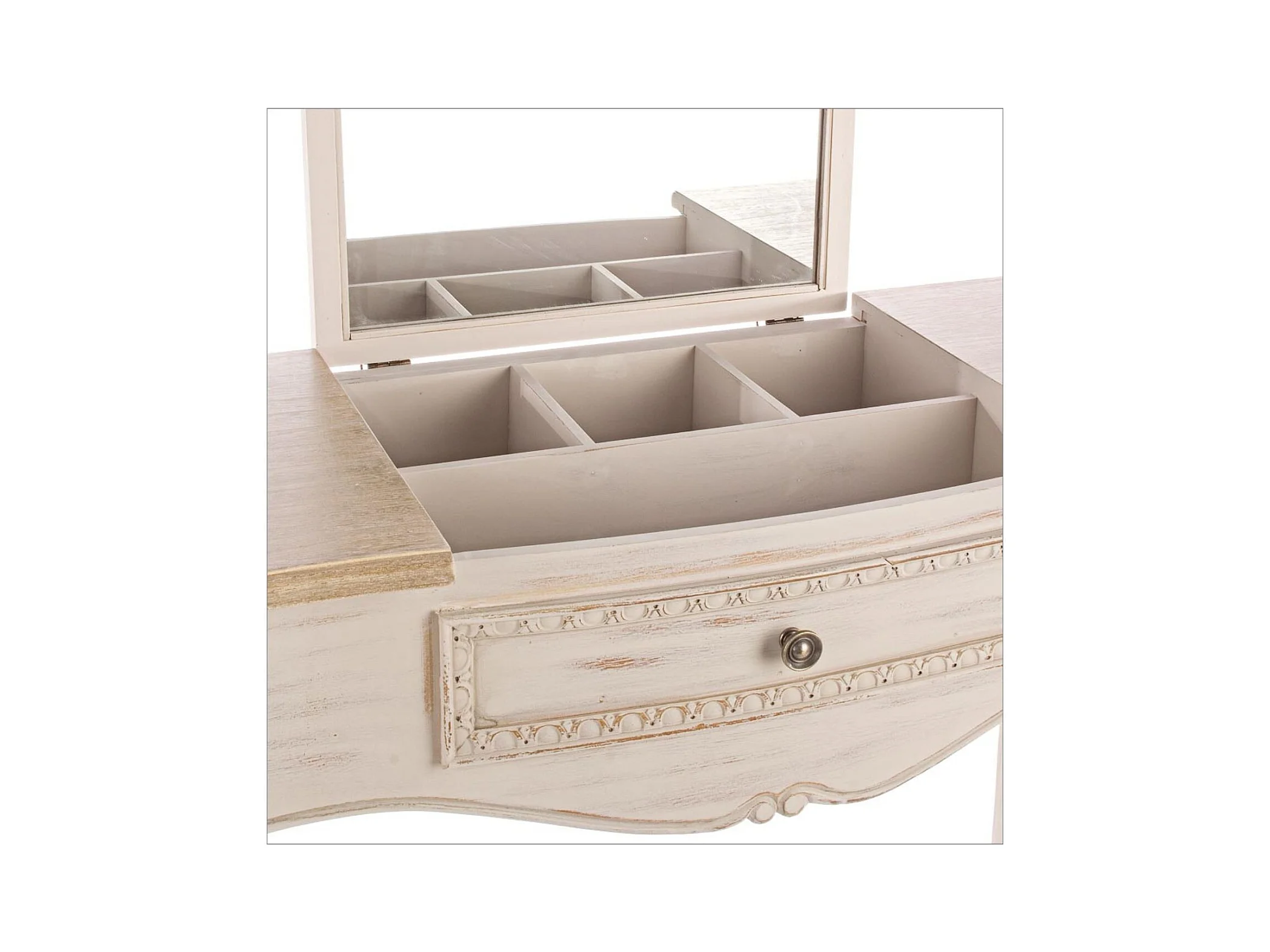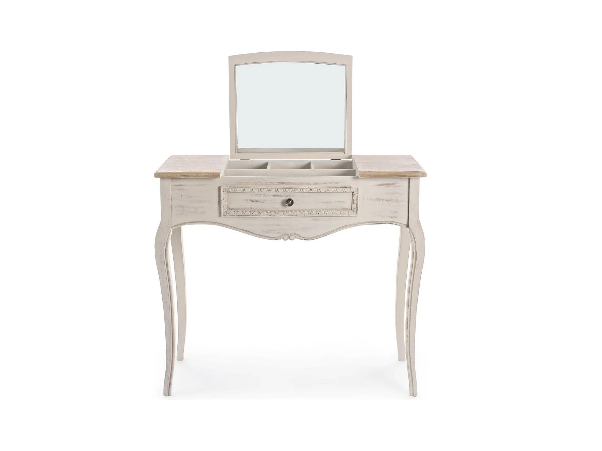 Console coiffeuse en bois beige patiné avec miroir et rangements - GARANCE