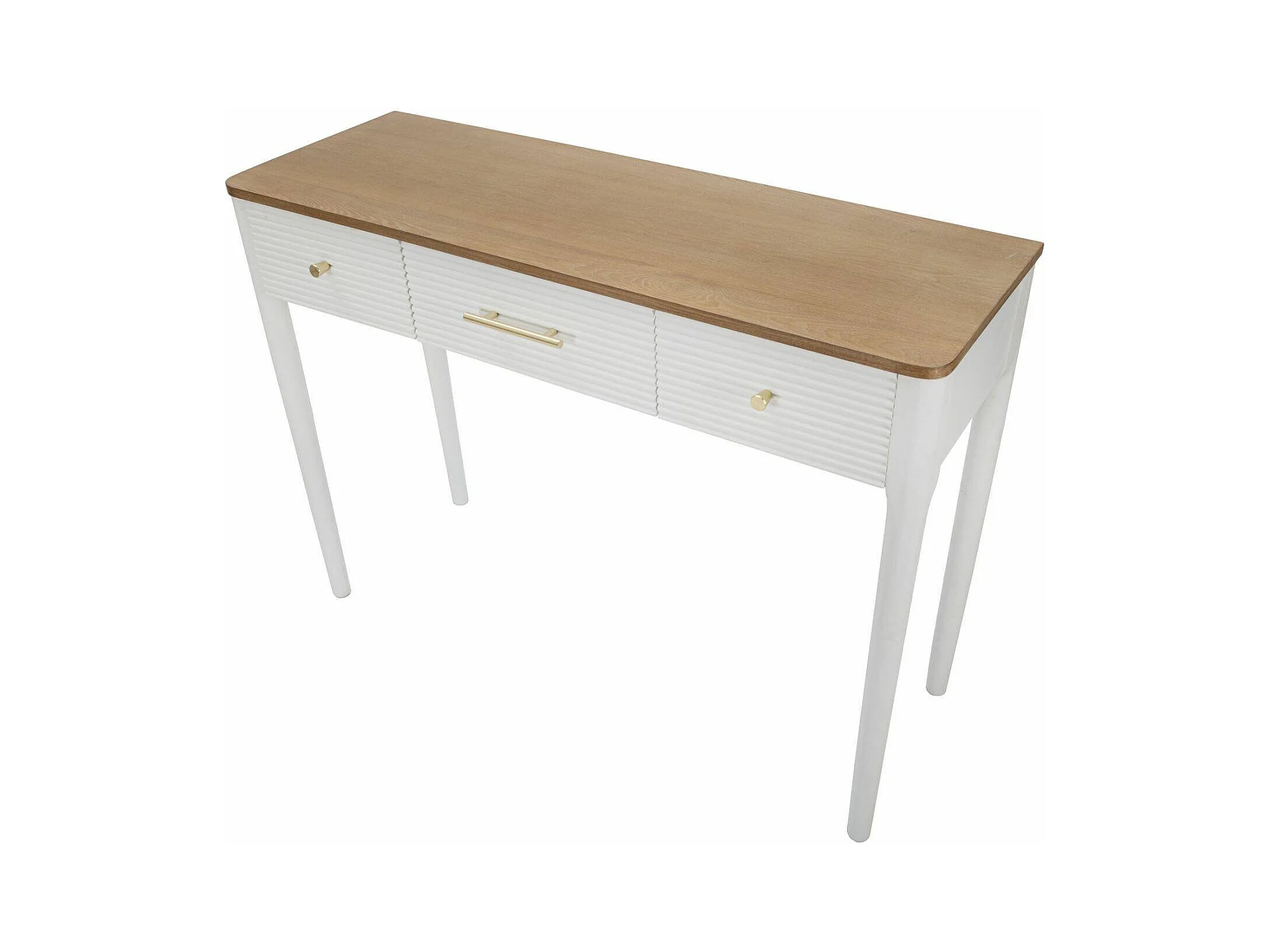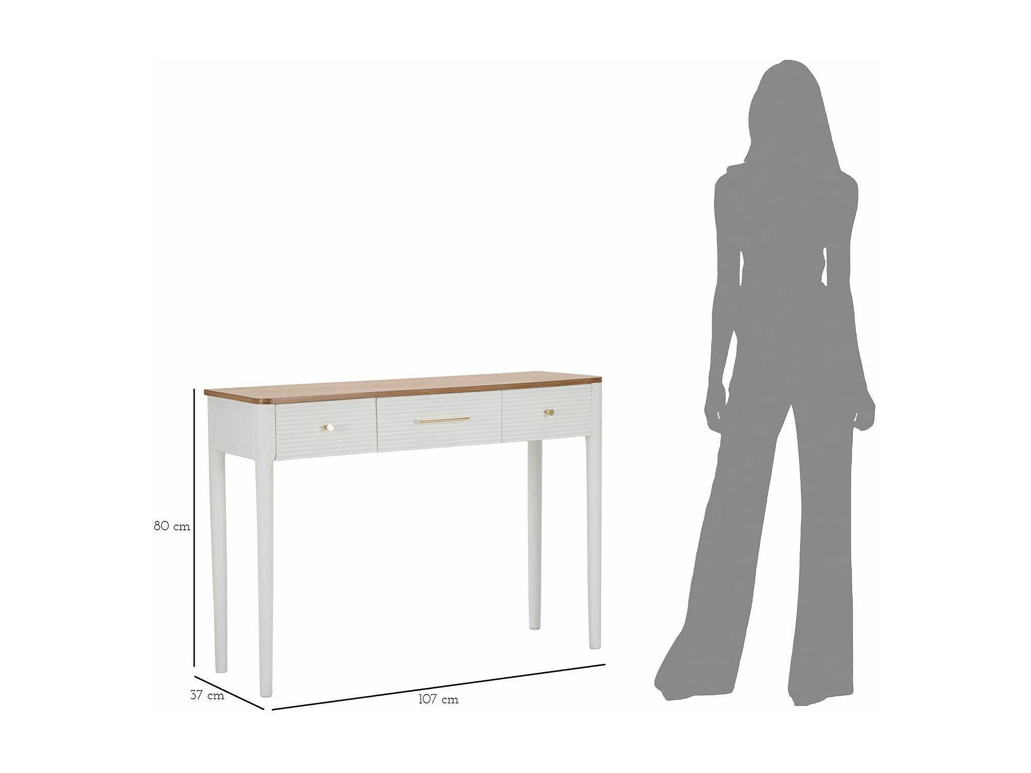 Console Crypto, Table polyvalente, Armoire de rangement, Bureau du couloir, 107x37 h80 cm, Blanc et marron