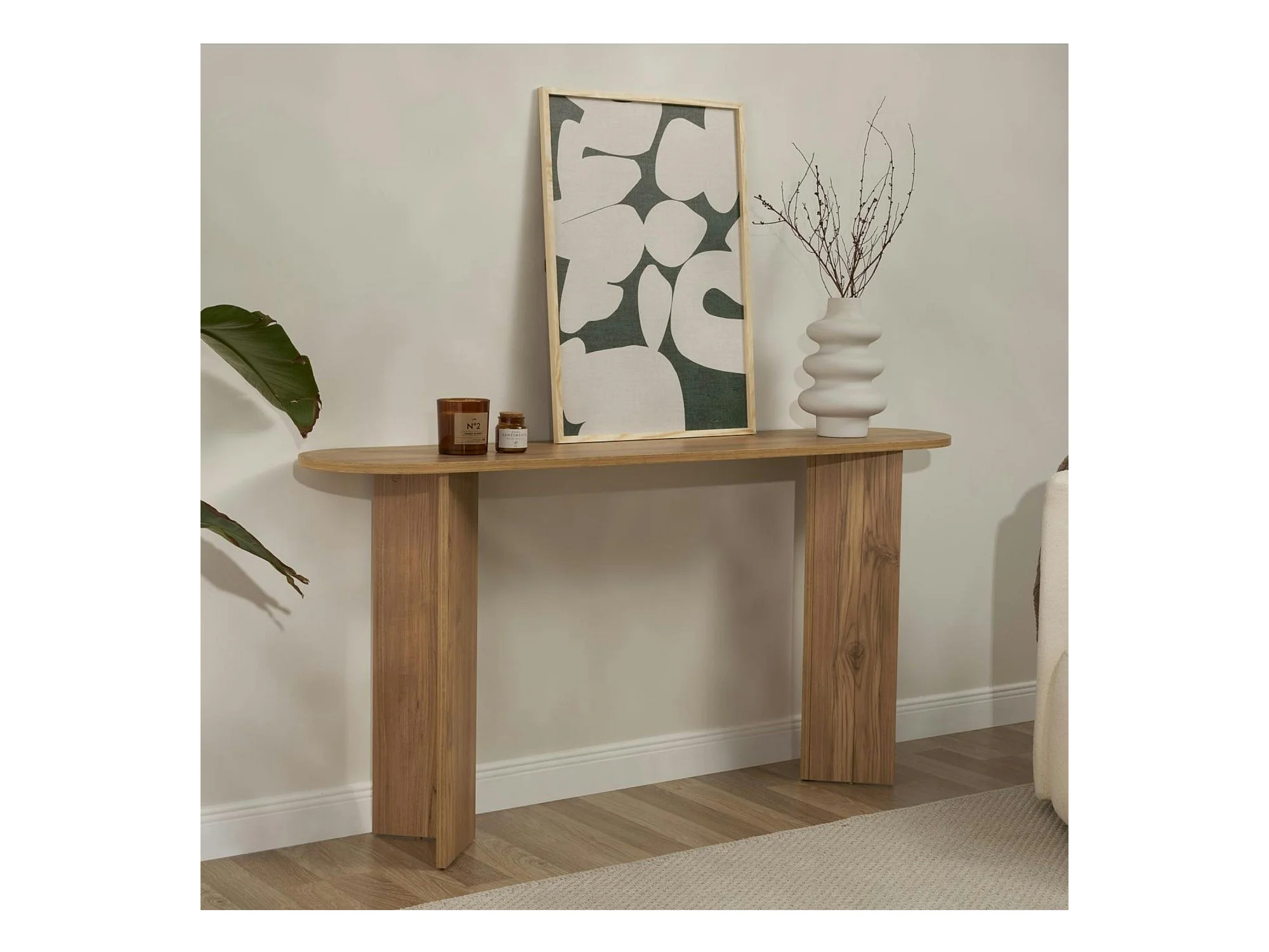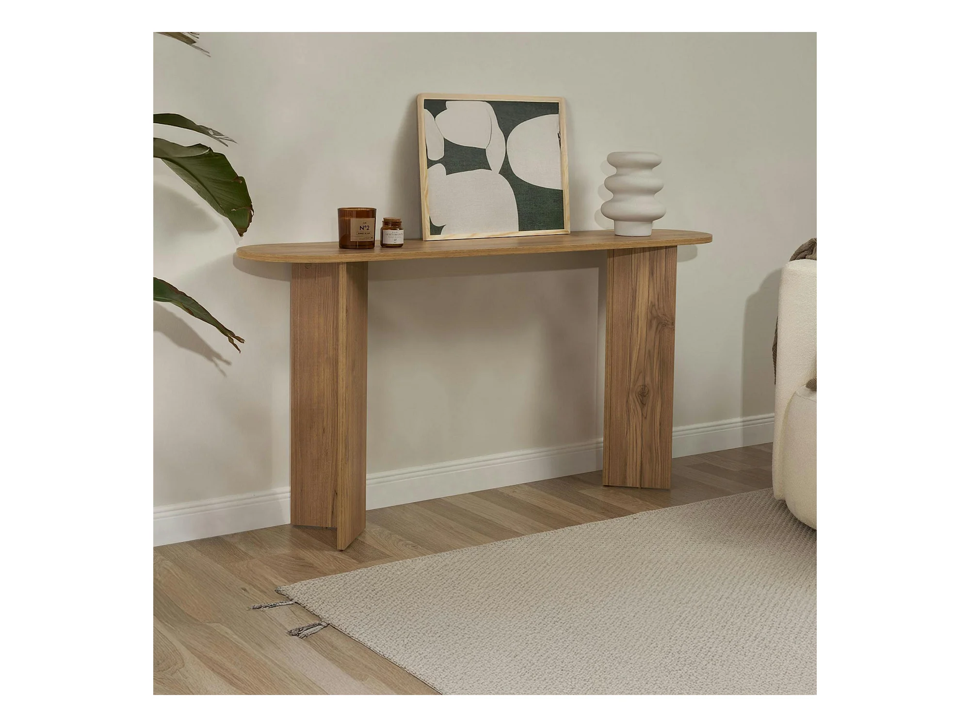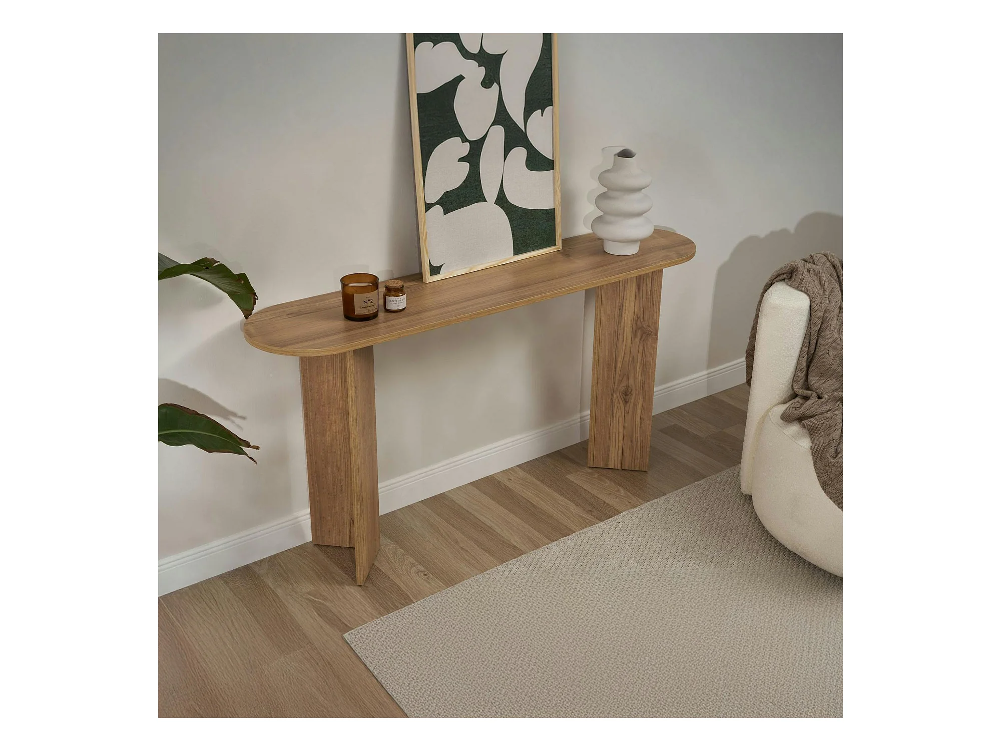 Console de salon ovale effet noyer clair - pieds en V MARFA