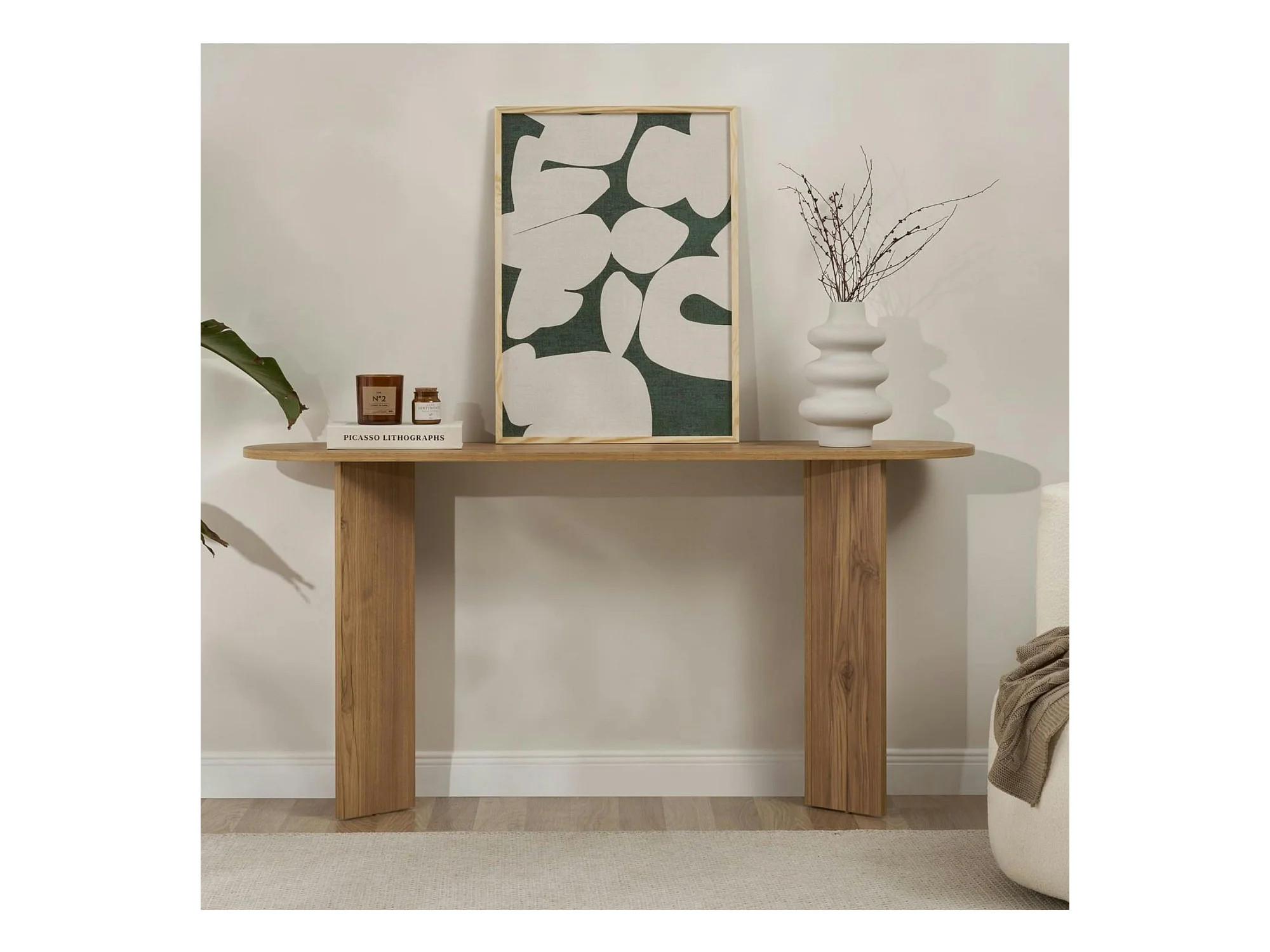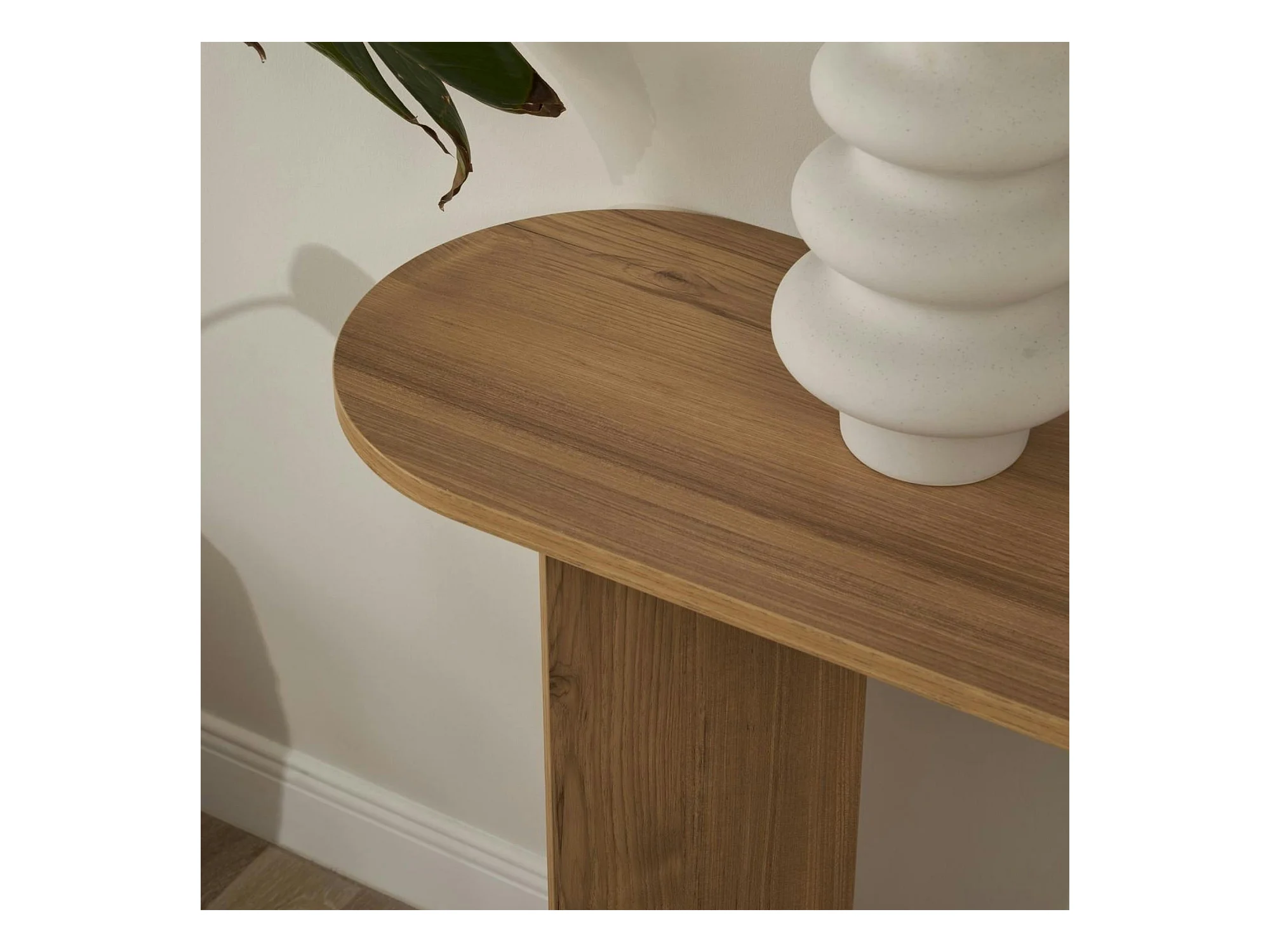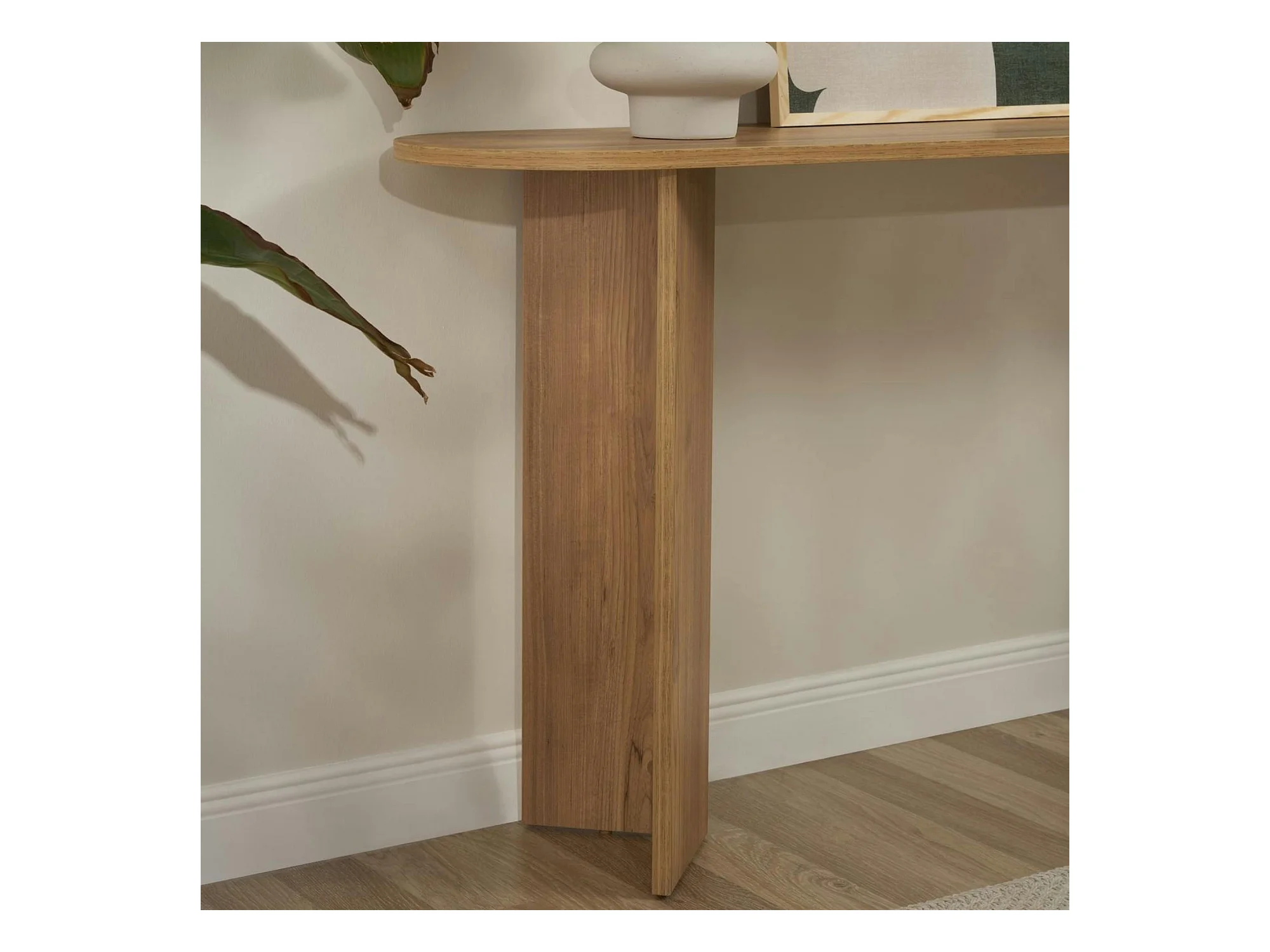 Console de salon ovale effet noyer clair - pieds en V MARFA