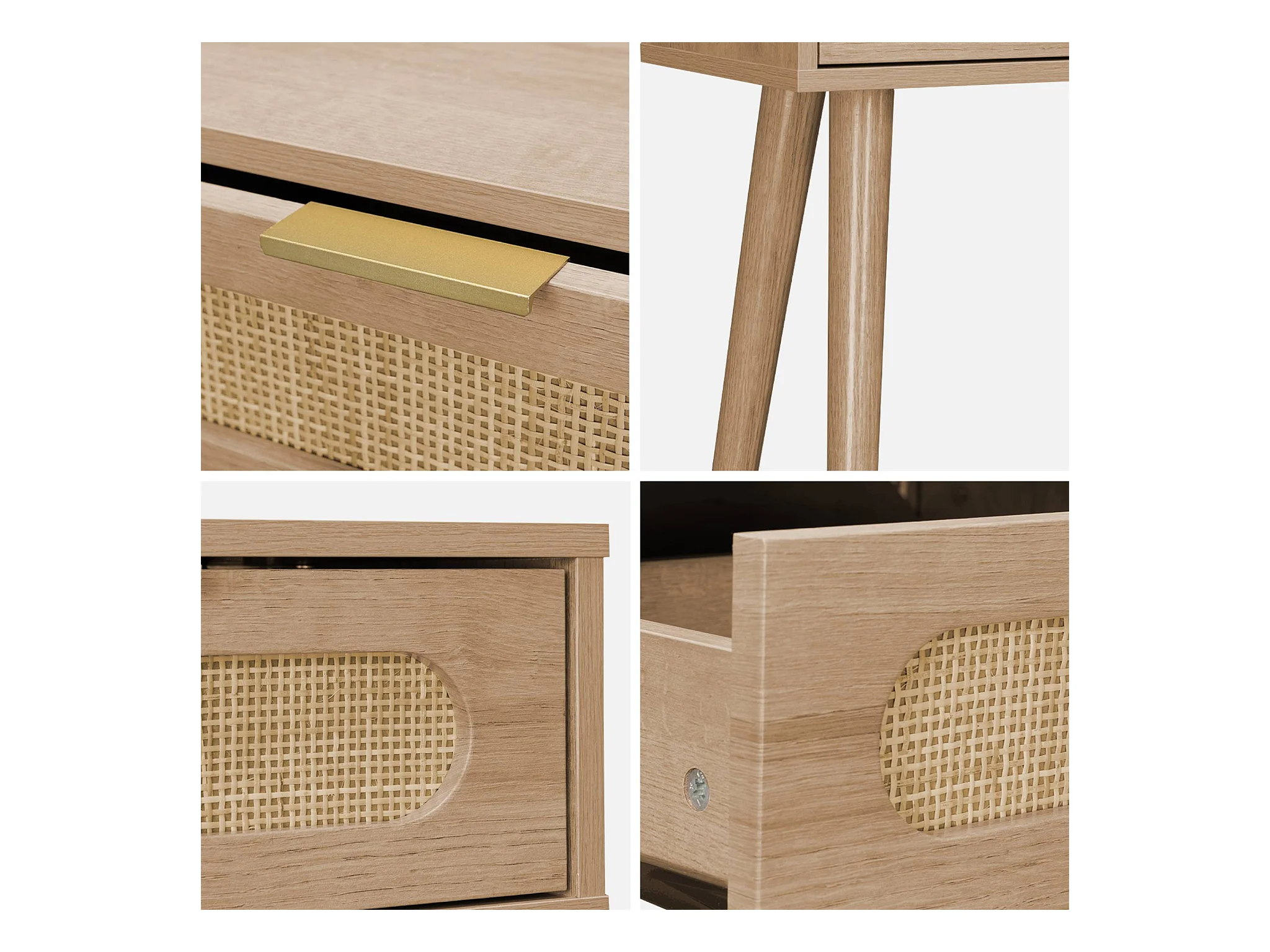 Console en cannage 100x29x81cm - Bohème - Naturel. 1 tiroir.1 espace de rangement. pieds scandinaves décor bois. 1 poignée