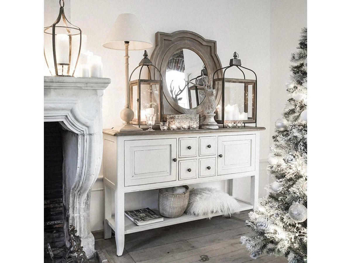 Console d'entrée 4 tiroirs 2 portes Bois Blanc - Manoir Interior's