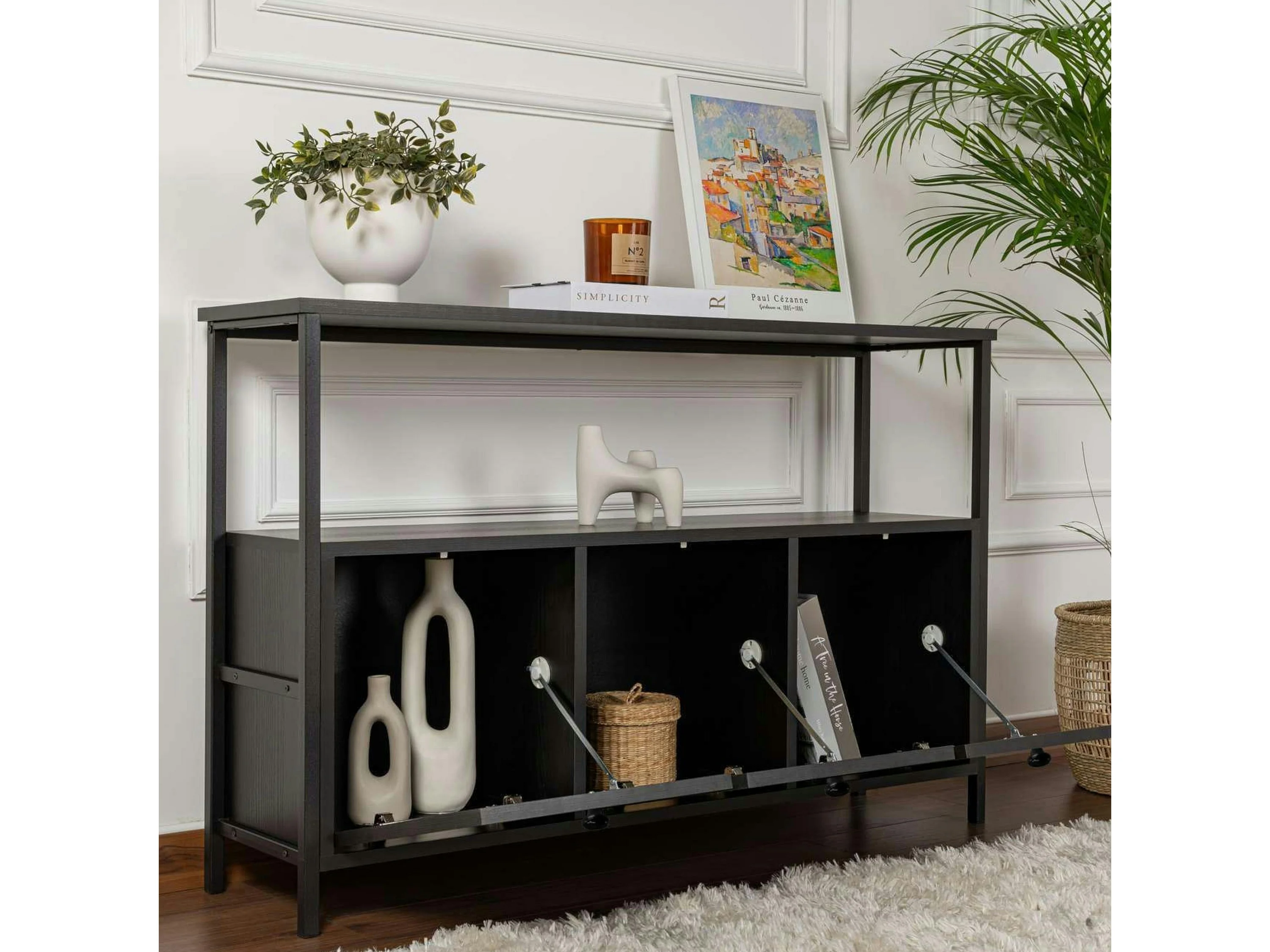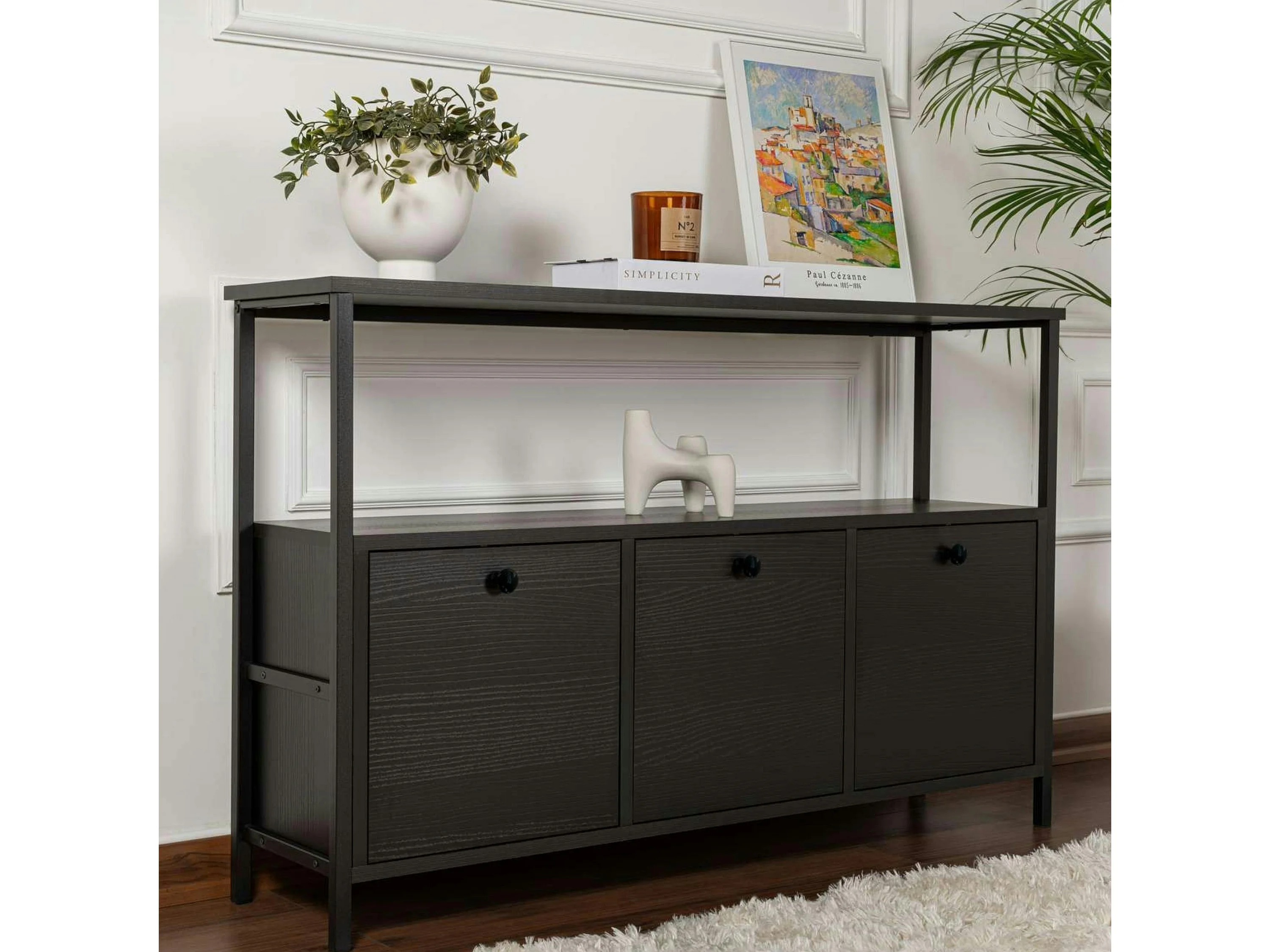 Console d'entrée avec rangement 3 niches, effet bois noir JENA