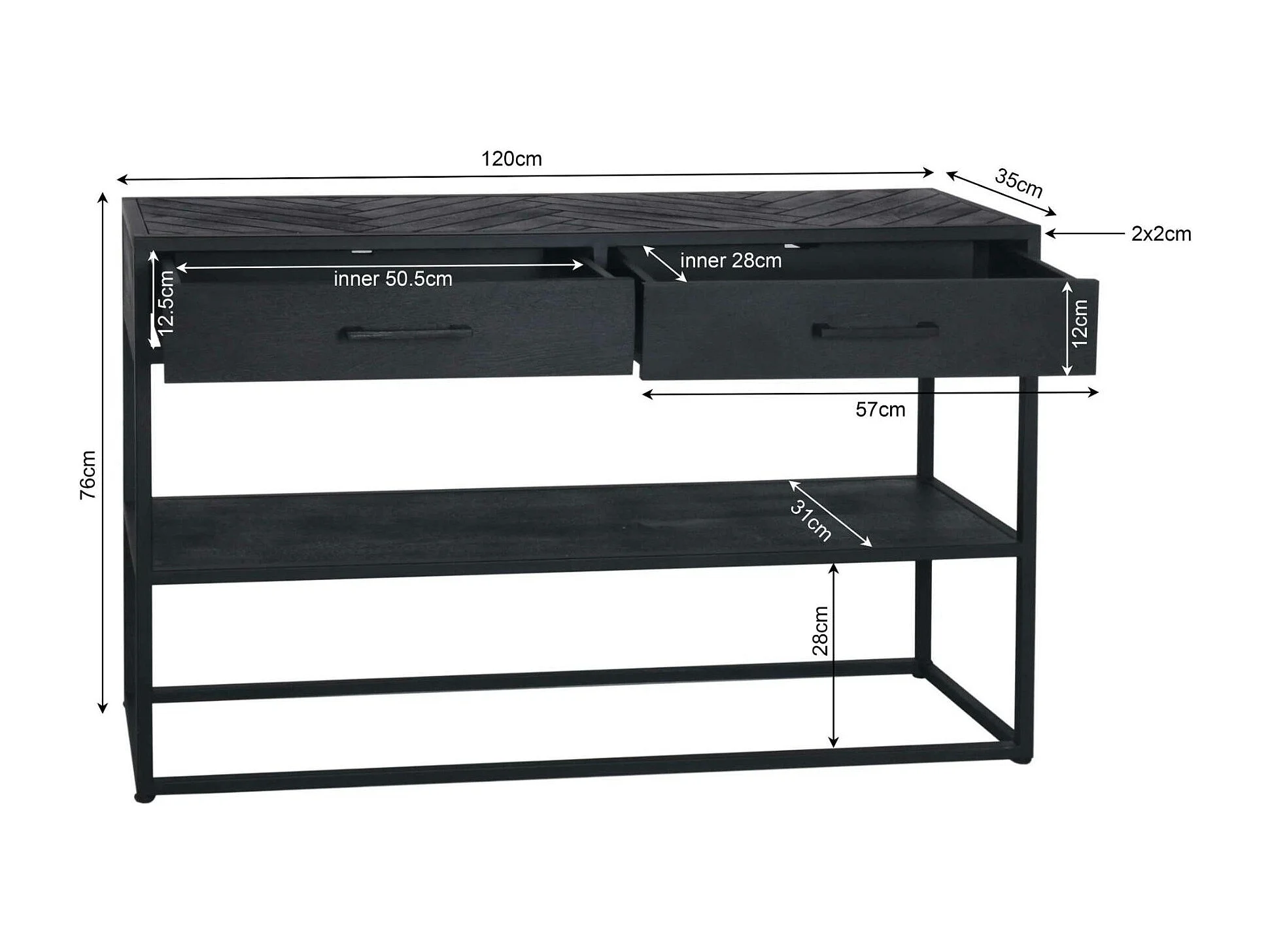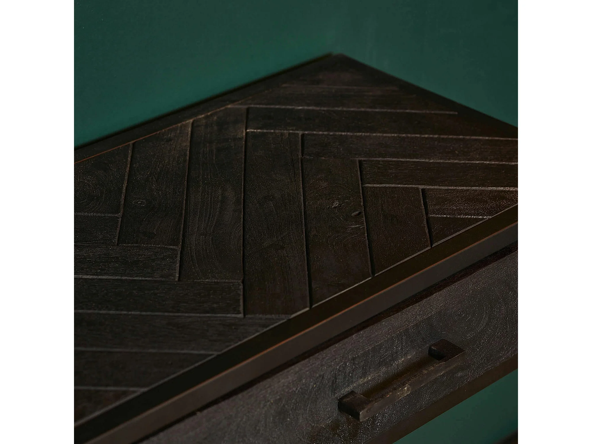 Console d'entrée en bois noir 2 tiroirs motif chevron ALVERA