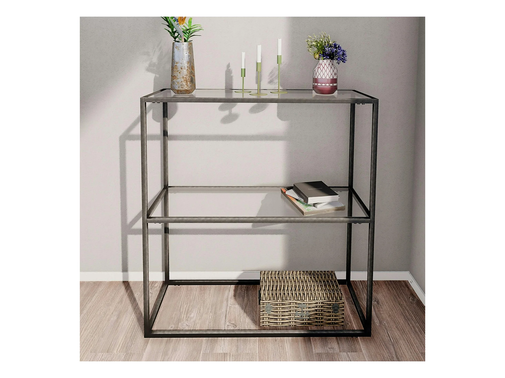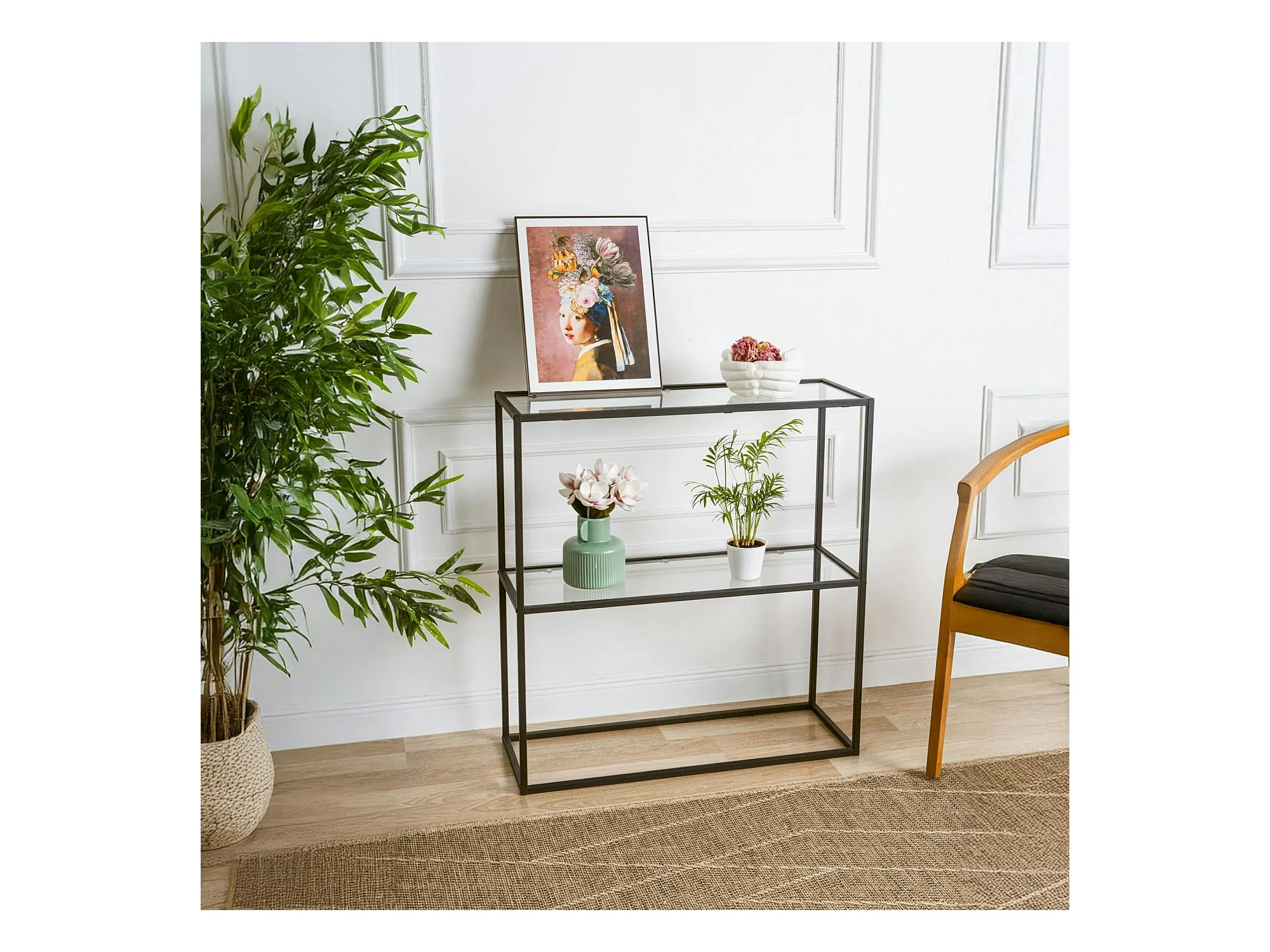 Console d'entrée en métal noir - 2 plateaux verre JENA