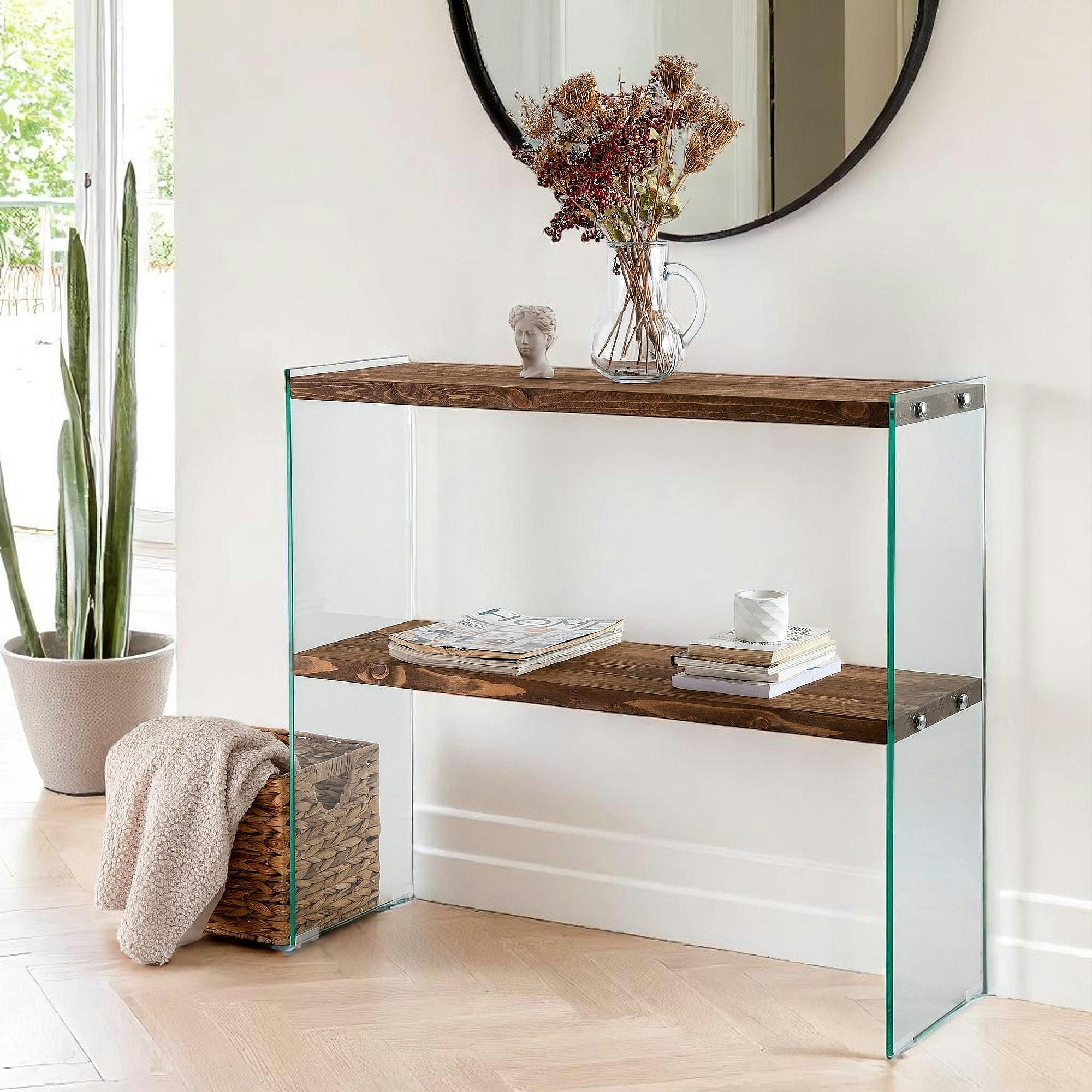 Console d'entrée minimaliste bois brun et verre LHASA