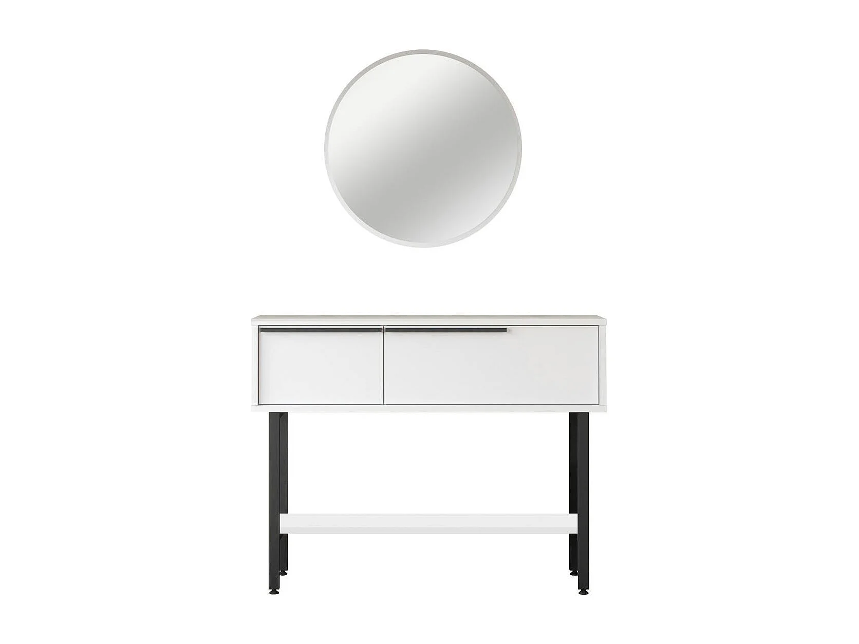 Console d'entrée moderne noir et blanc et miroir rond JENA