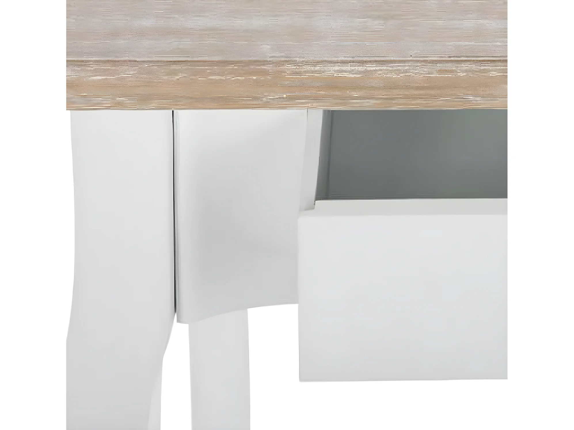 Console en bois avec 2 tiroirs, coloris blanc/chêne - Dim : L.87 x l.34 x H.78 cm