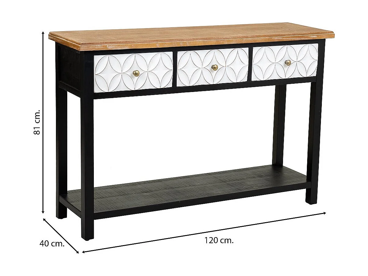 Console en bois avec 3 tiroirs 120x40x81