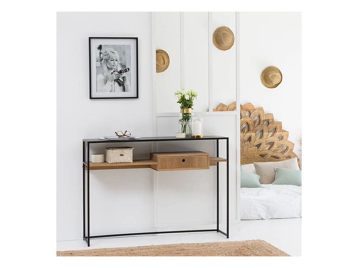 Table console en mdf avec un tiroir et 3 compartiments,120x30x81cm noir