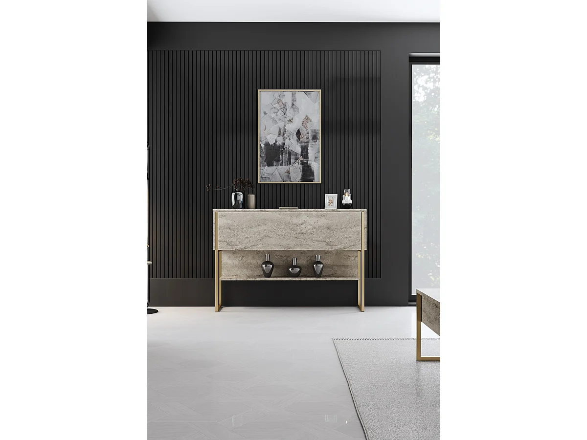Console en bois "Luxe" - 120 x 30 x 80 cm - Travertin Or