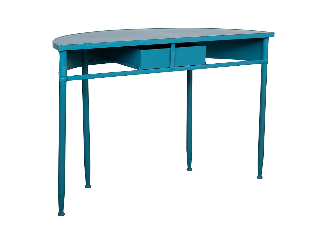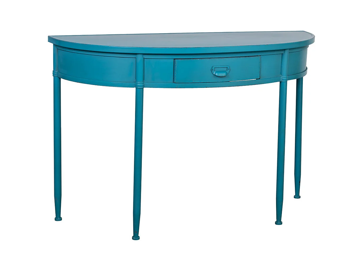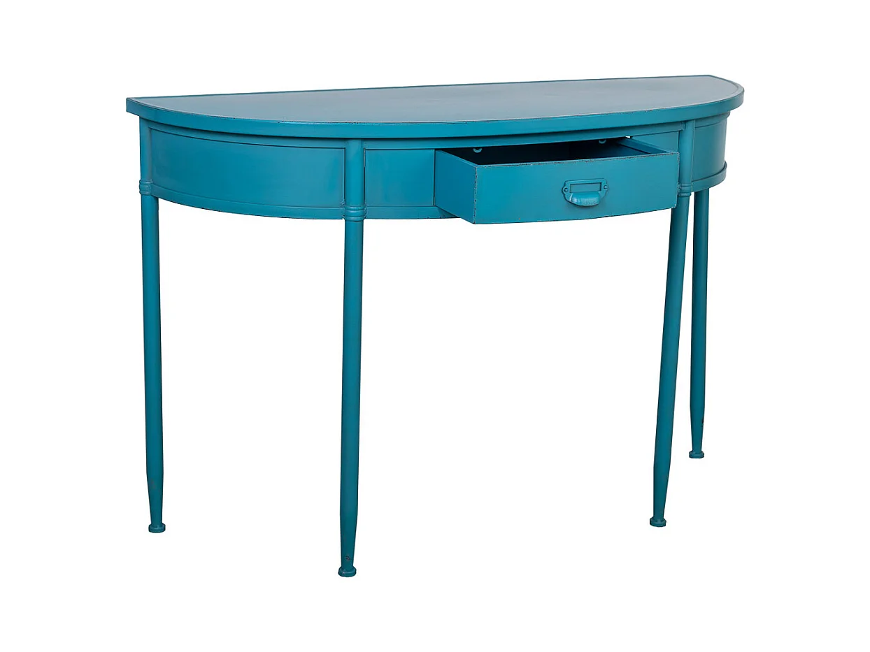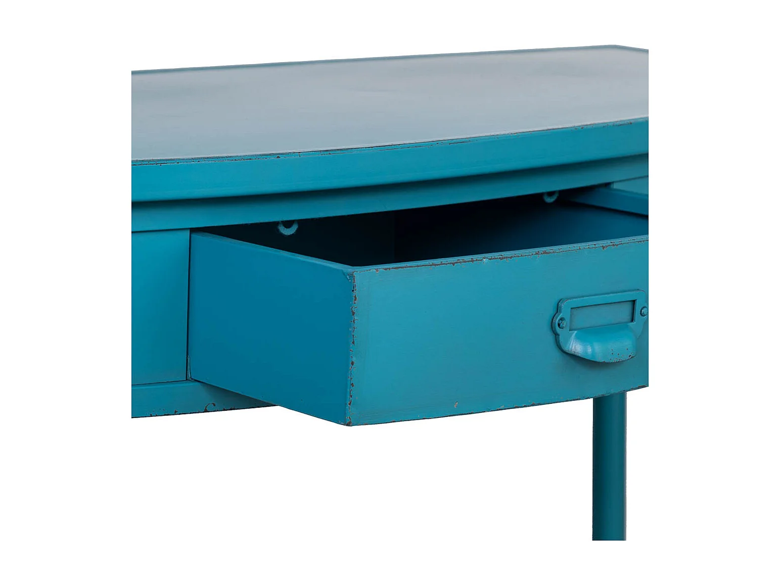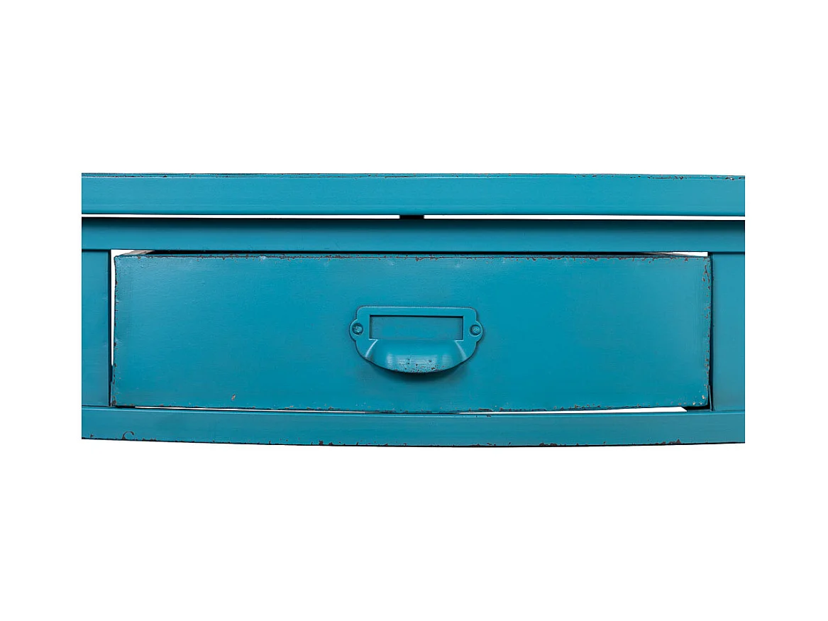Console en métal avec 1 tiroir vieillie bleue 120x44x80