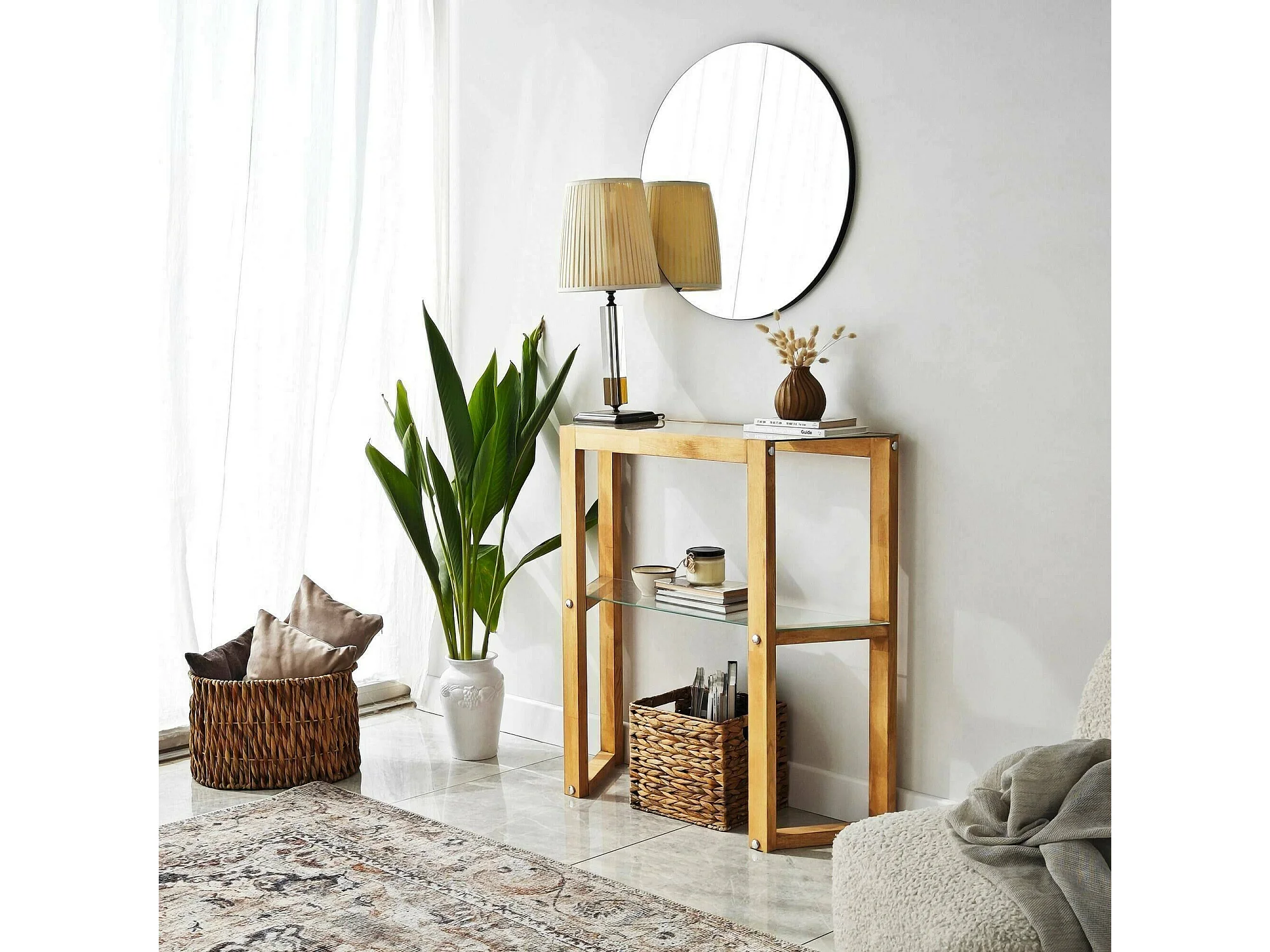 Console Euphoria, Table polyvalente, Armoire de rangement, Bureau du couloir, 85x31 h85 cm, Chêne