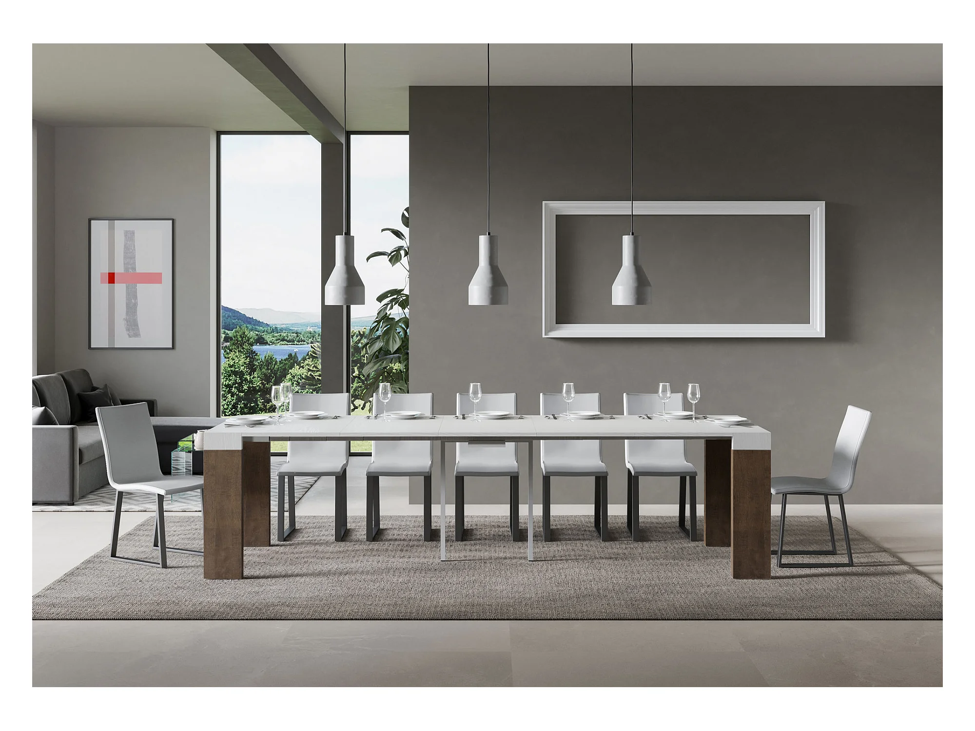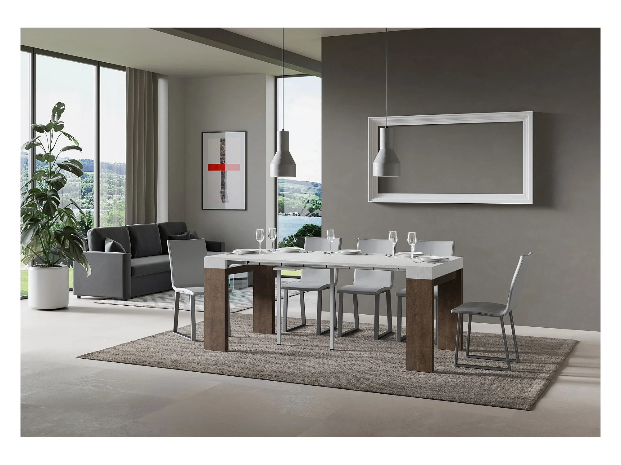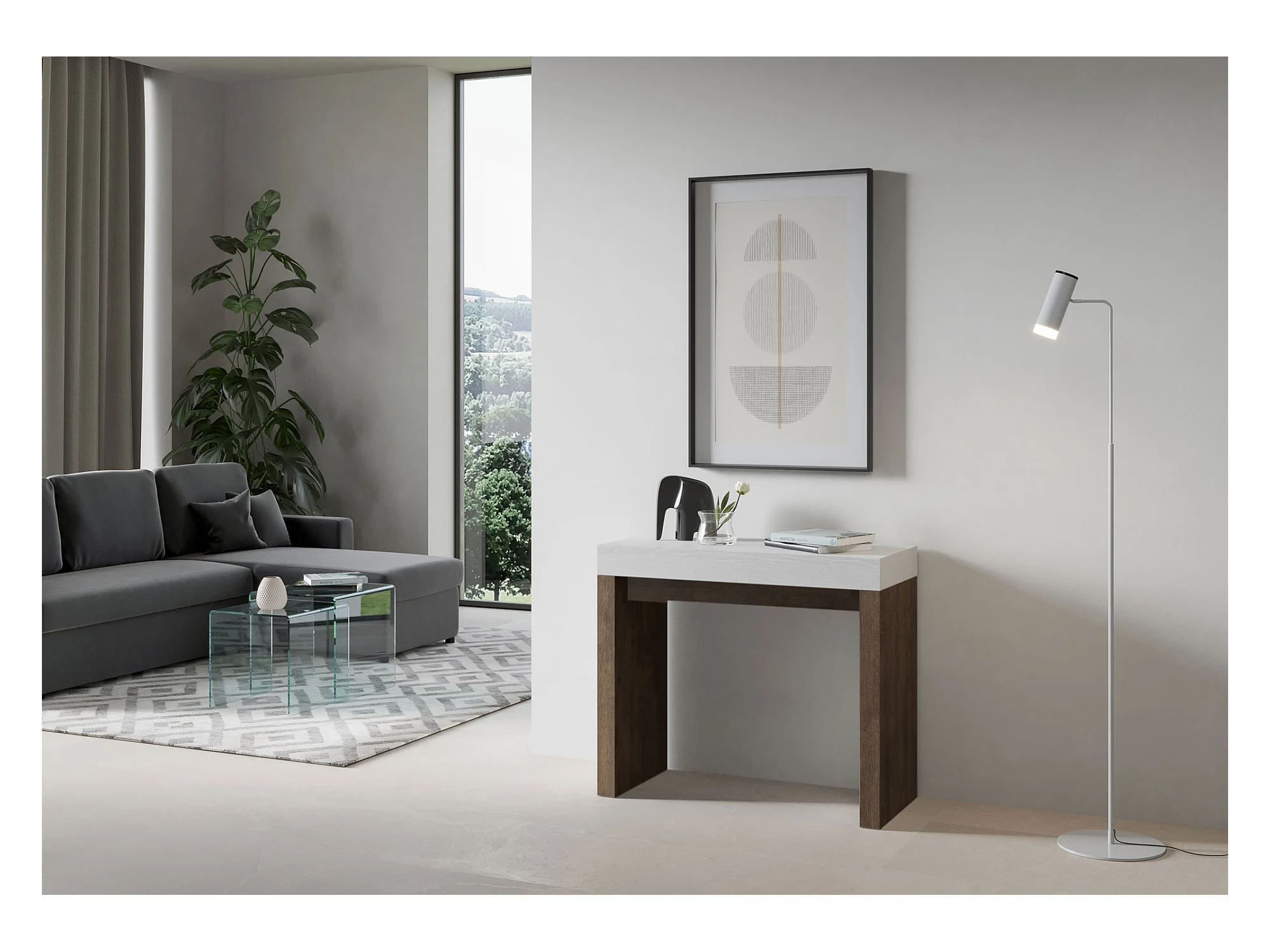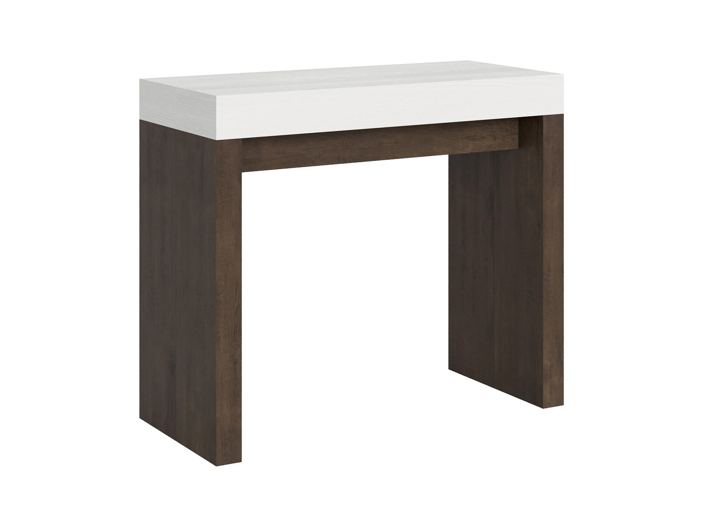 Console extensible 90x40/300 cm Roxell Mix dessus Frêne Blanc - structure Noyer