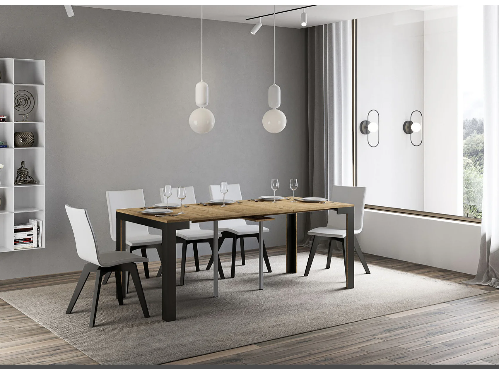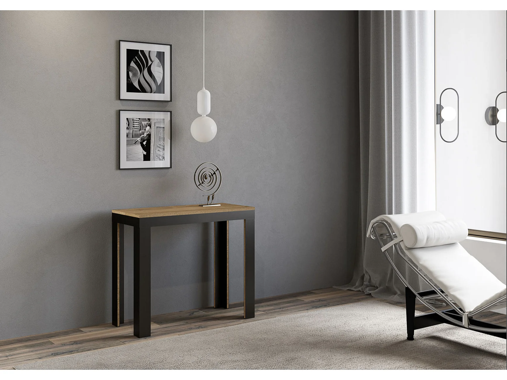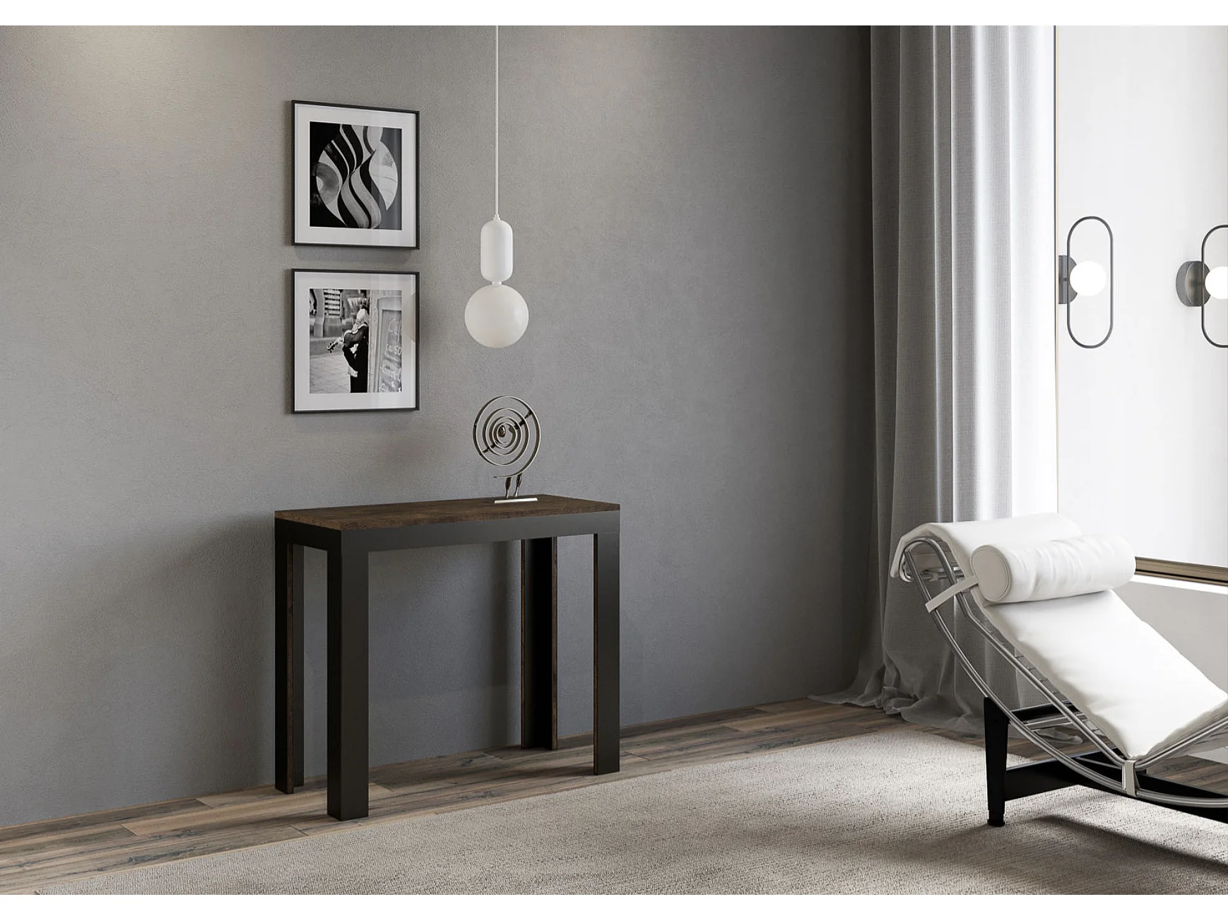 Console extensible bois pieds bois et acier anthracite Liva evolution-Couleur Marron-Sur roulettes-5 rallonges