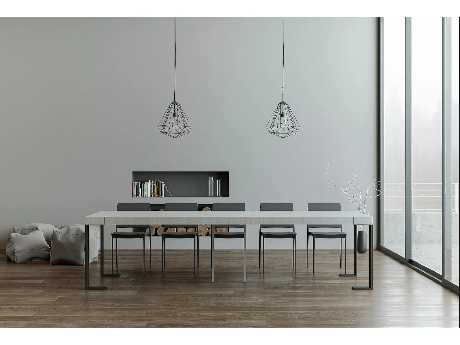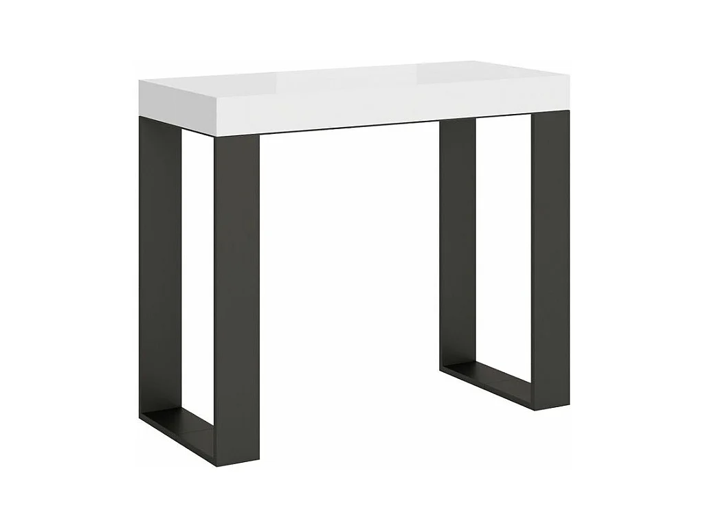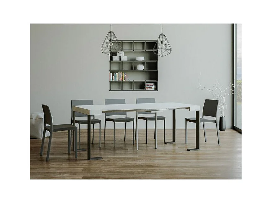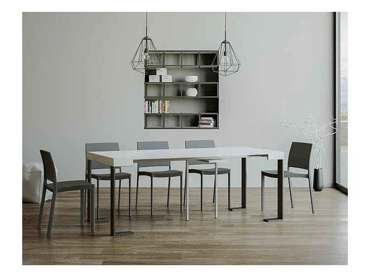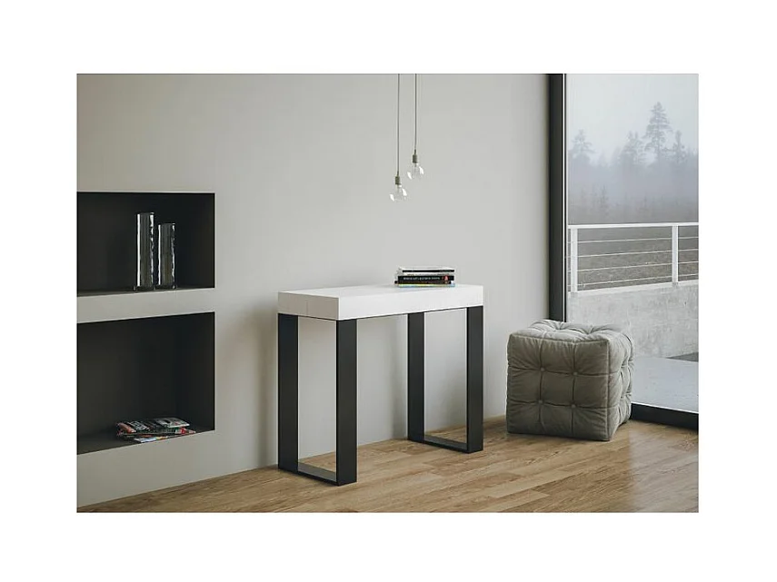 Console extensible bois et acier Tiroz-Couleur Blanc-4 pieds-3 rallonges fines