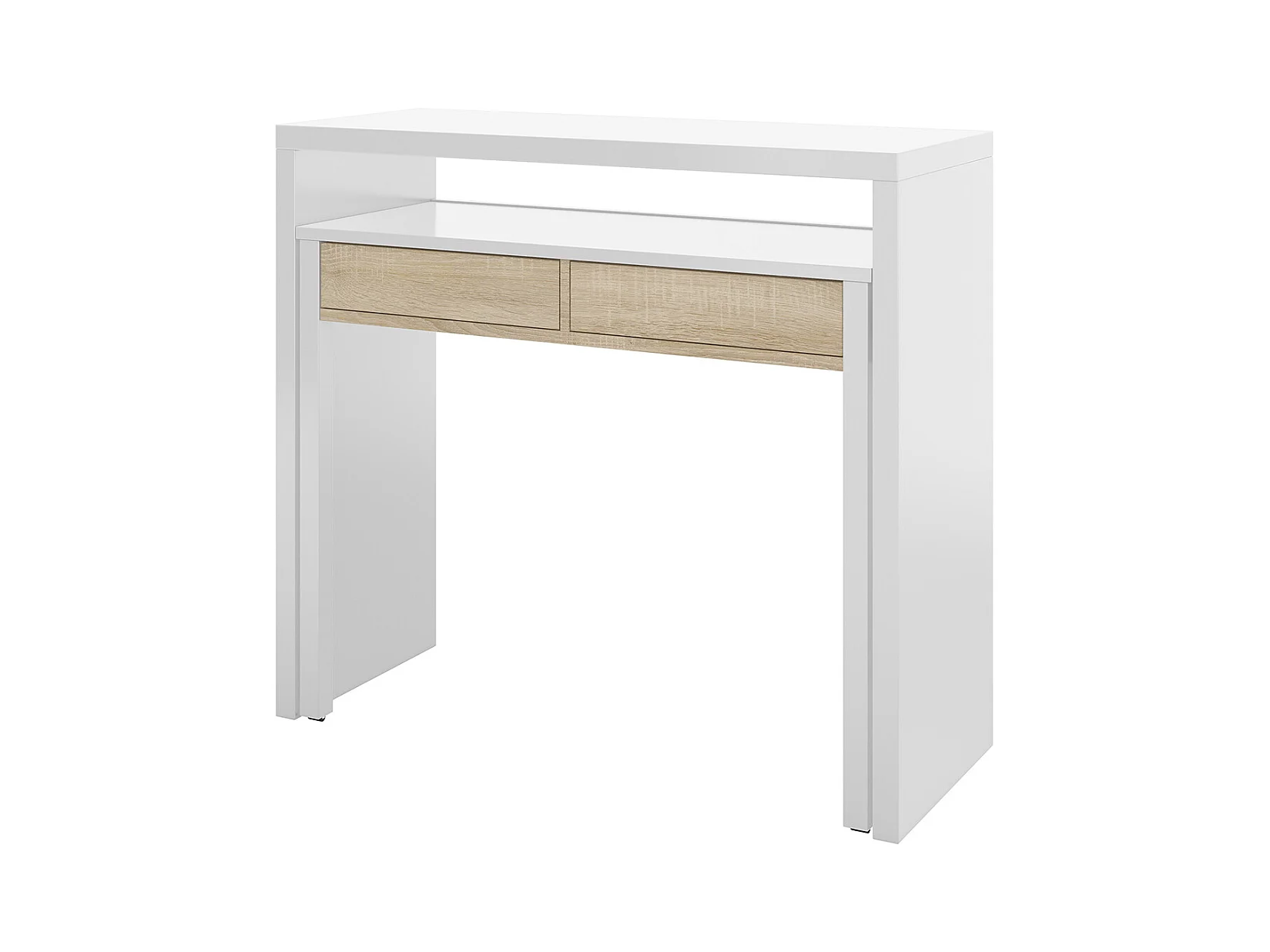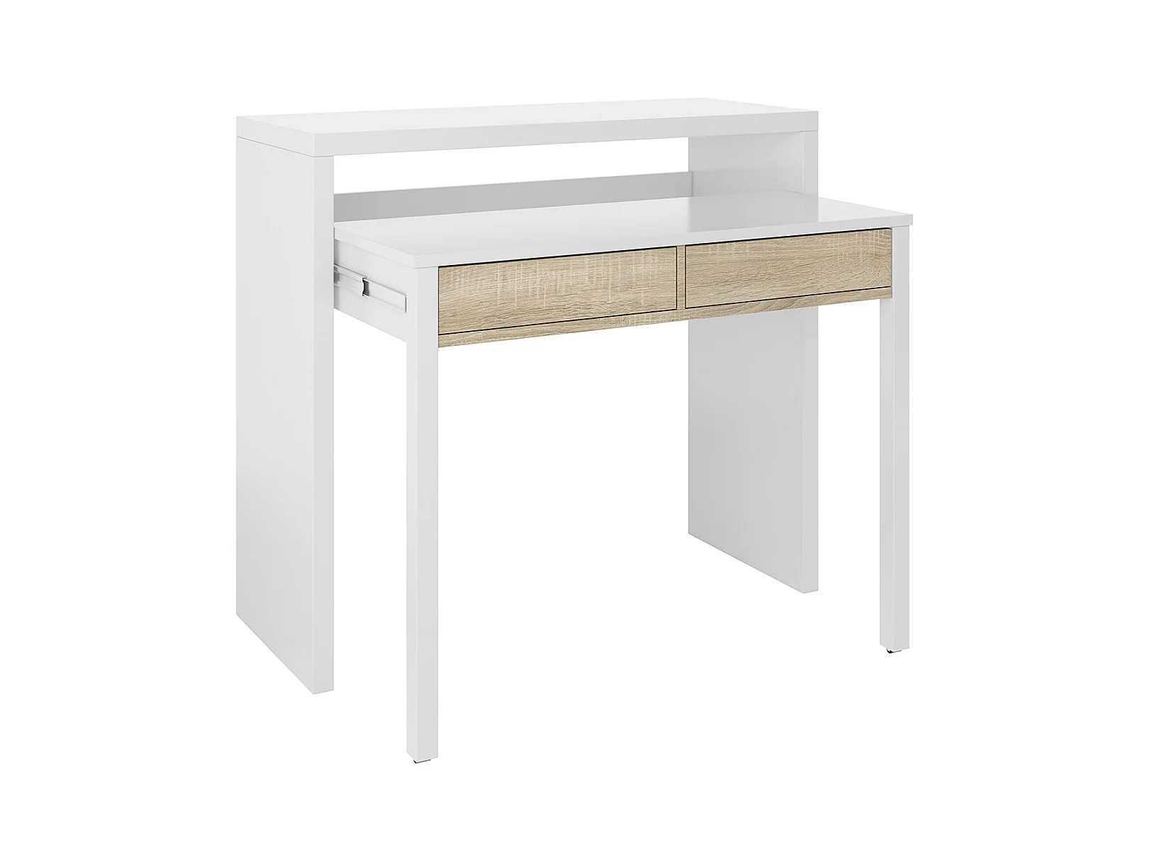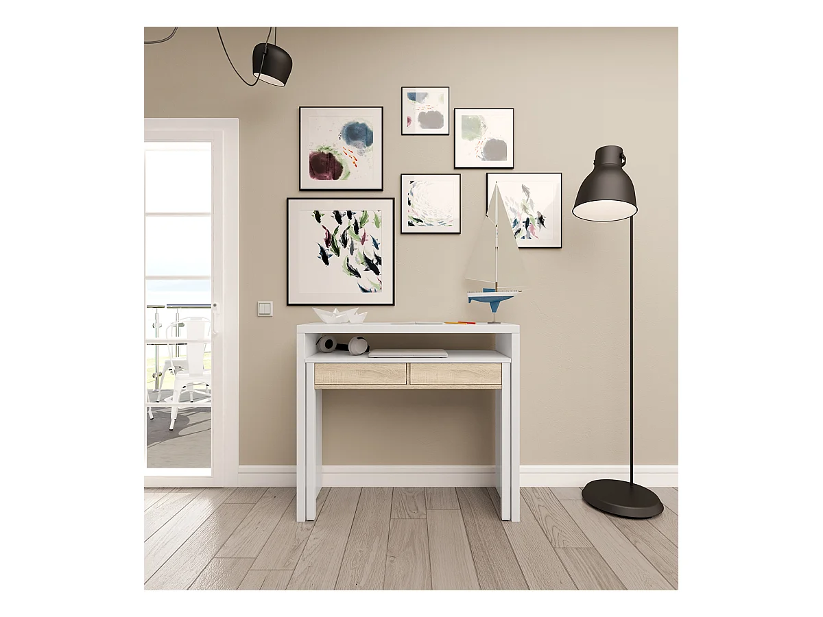 Console extensible coloris blanc et chêne - Dim : 88 x 99 x 36 cm