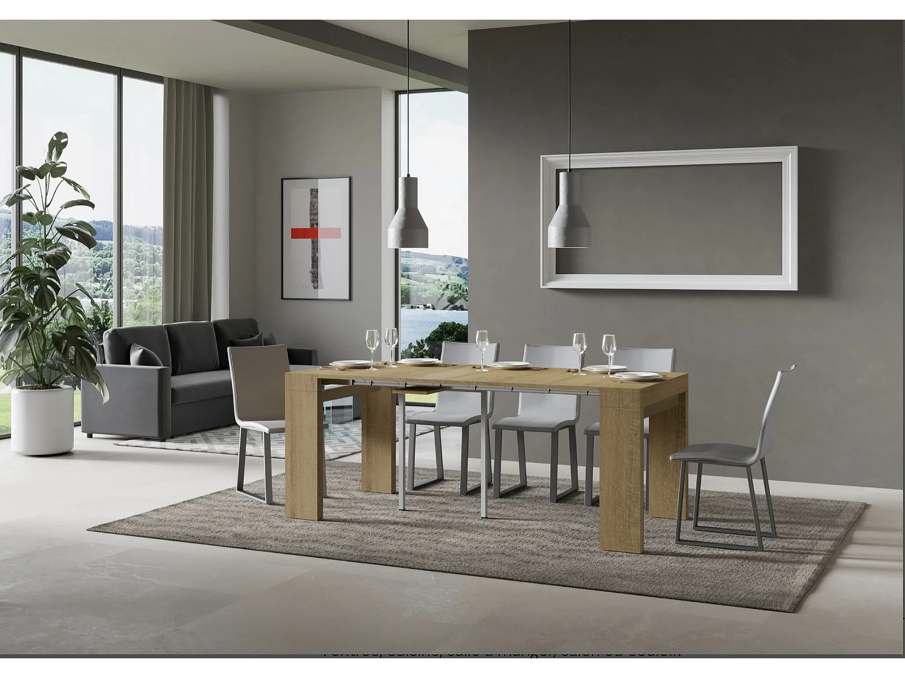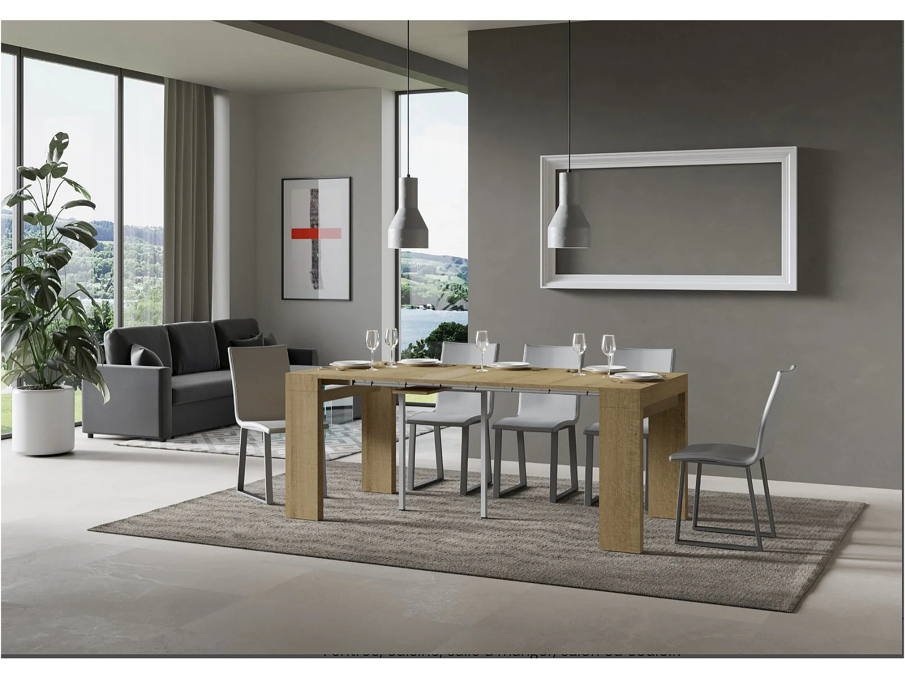 Console extensible en bois Ribo 90x40-196 ou 90x40-300-Couleur Marron-Pied et support sur roulettes-5 rallonges