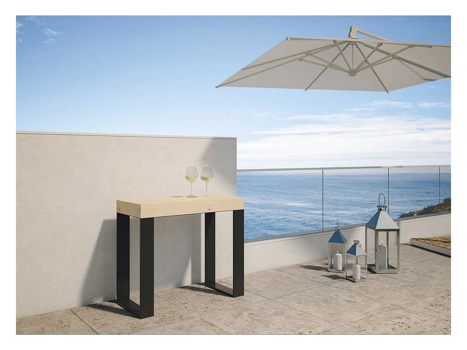 Console extensible pin massif clair et pieds métal anthracite 14 personnes 40 à 290cm Orina