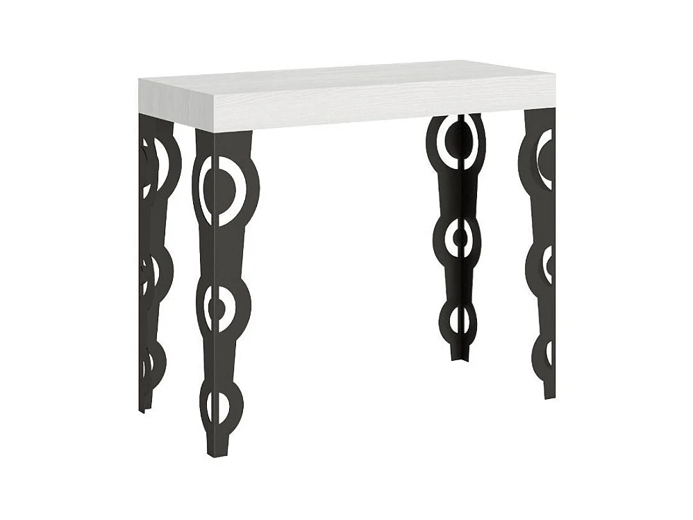 Console extensible style oriental Agadir-Couleur Blanc-4 pieds-5 rallonges fines