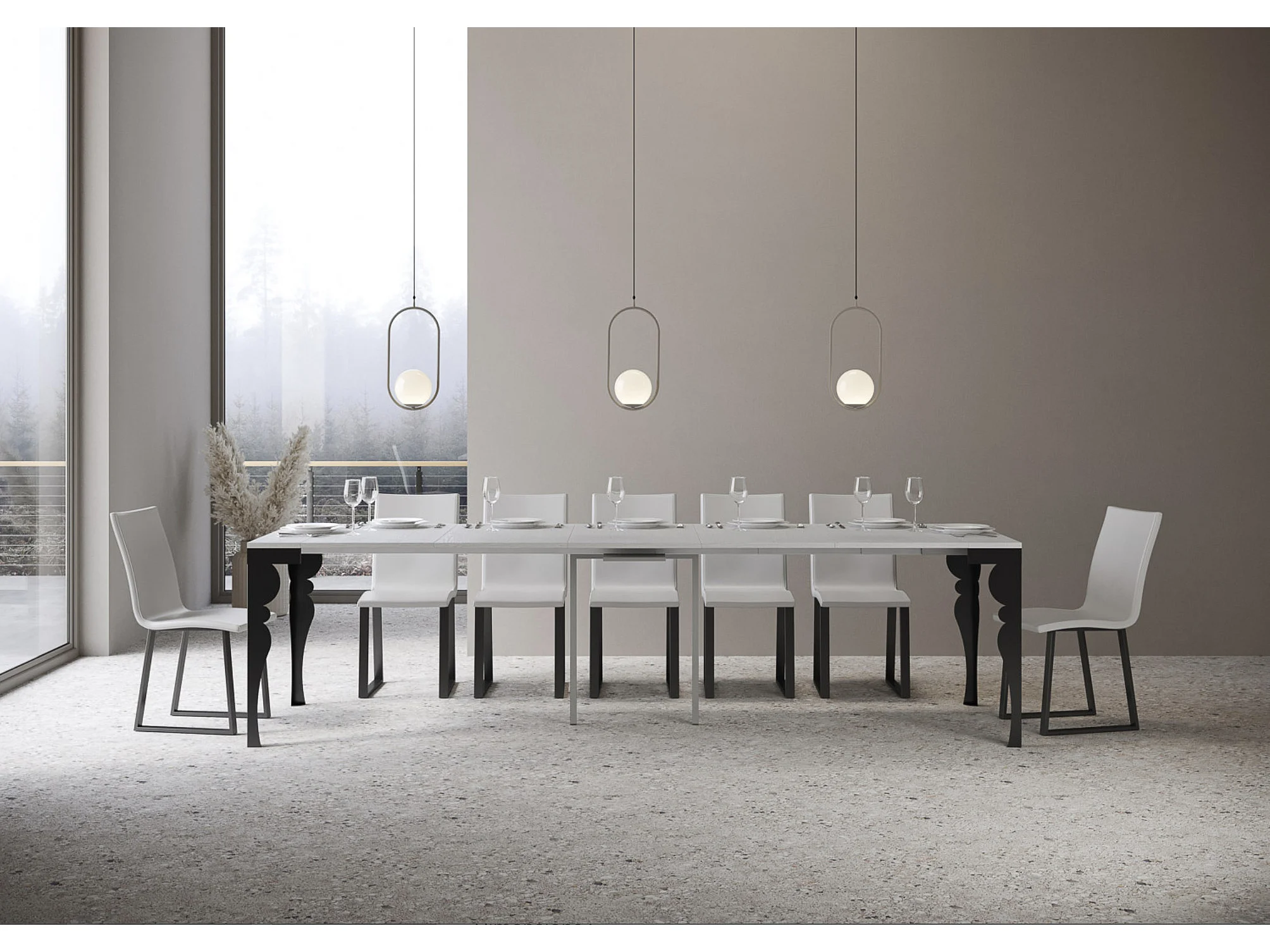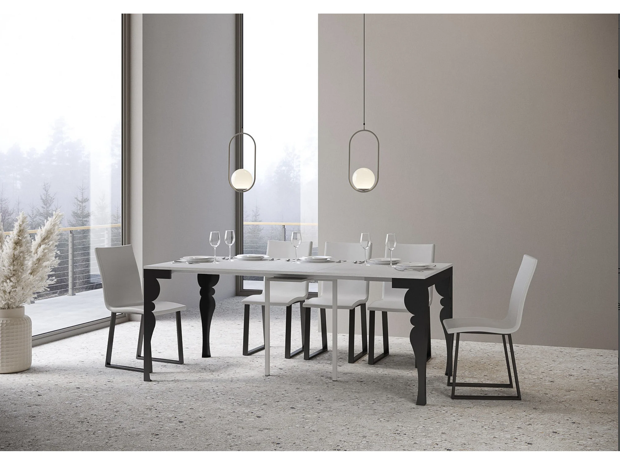 Console extensible style orientale Torza evolution-Couleur Blanc-4 pieds-5 rallonges