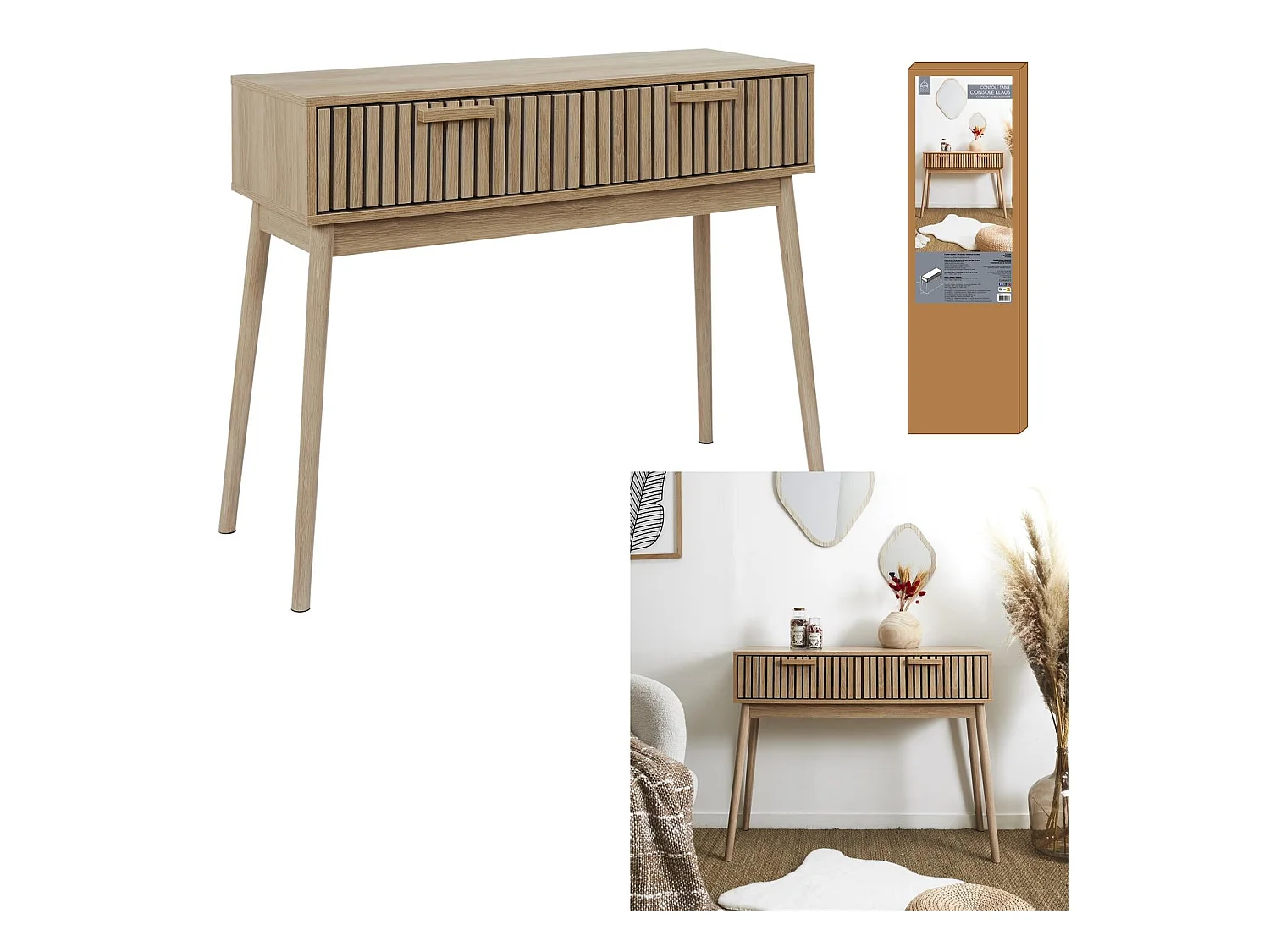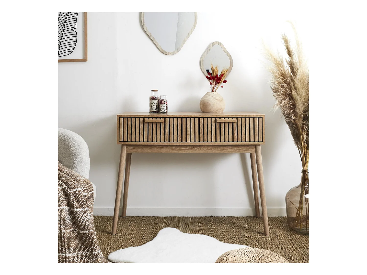 Console 2 tiroirs paulownia et pin massif clair Carla