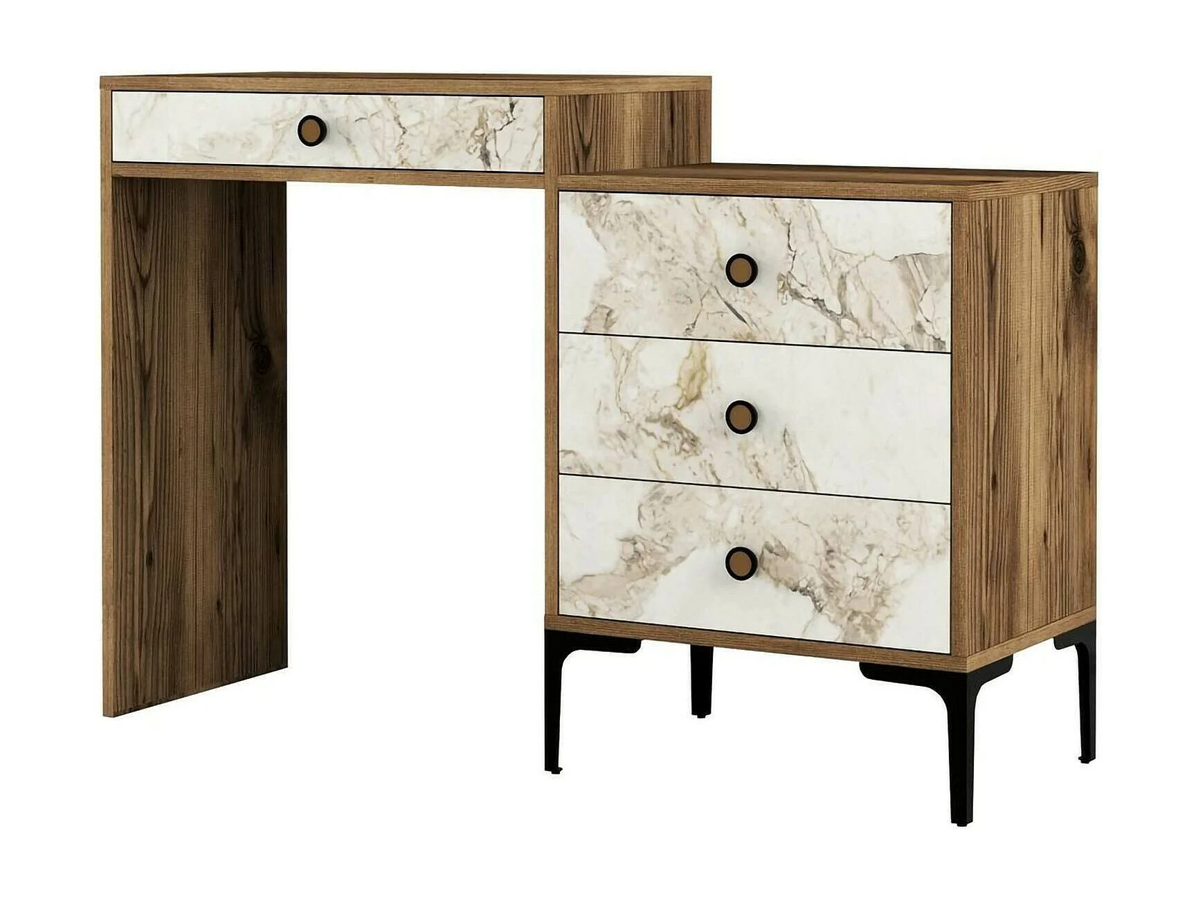 Console Lyra, Table polyvalente, Armoire de rangement, Bureau du couloir, 124x40 h85 cm, Noyer et Blanc