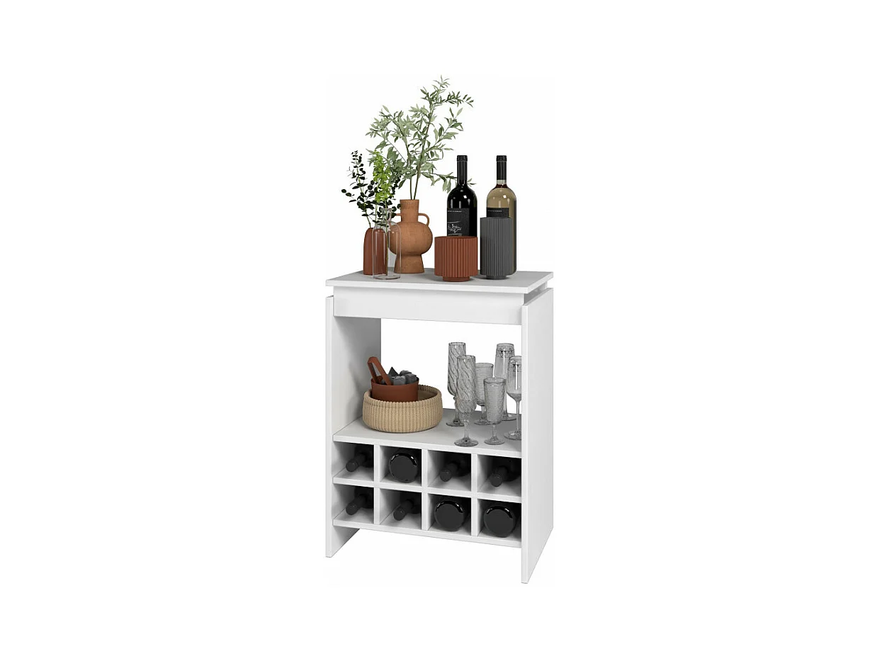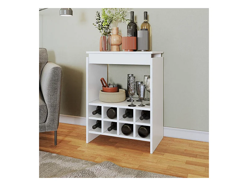Console - Meuble BAR Blanc Rangement 8 Bouteilles FLOAT